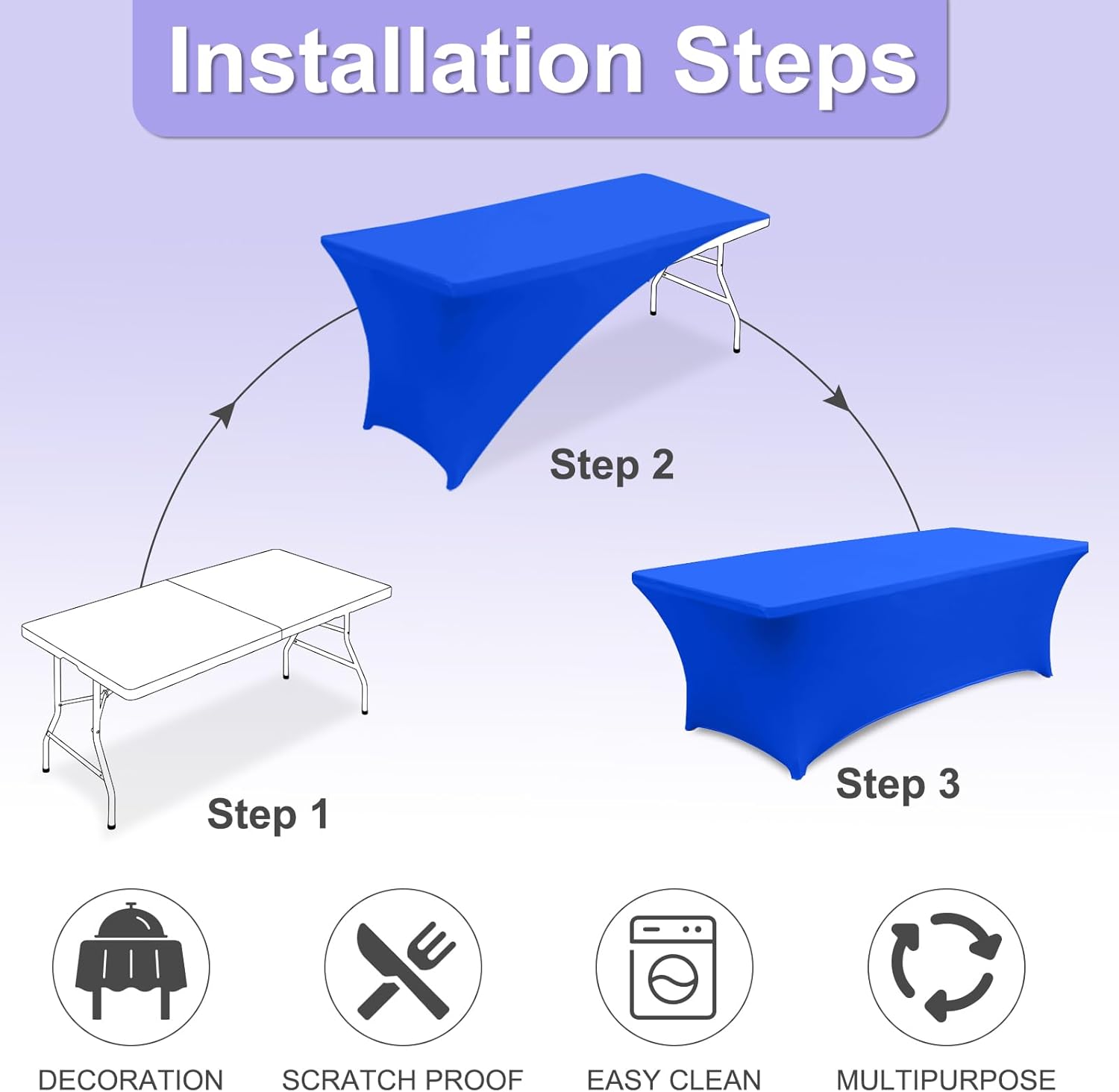 ABCCANOPY 6 FT Royal Blue Spandex Table Cover Stretch Fitted Wrinkle Resistant Tablecloth Reuse for Rectangular Folding Table Patry Event Wedding Banquet Protector