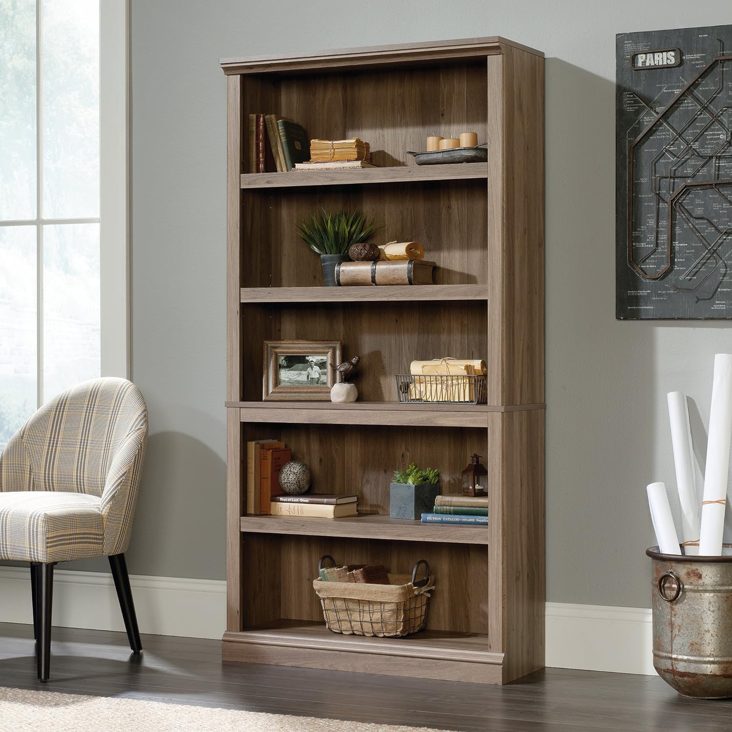 Sauder 5 Tier Book Shelf Wooden Bookcase Multipurpose Bookshelf for Home Office, Living Room, in Salt Oak finish