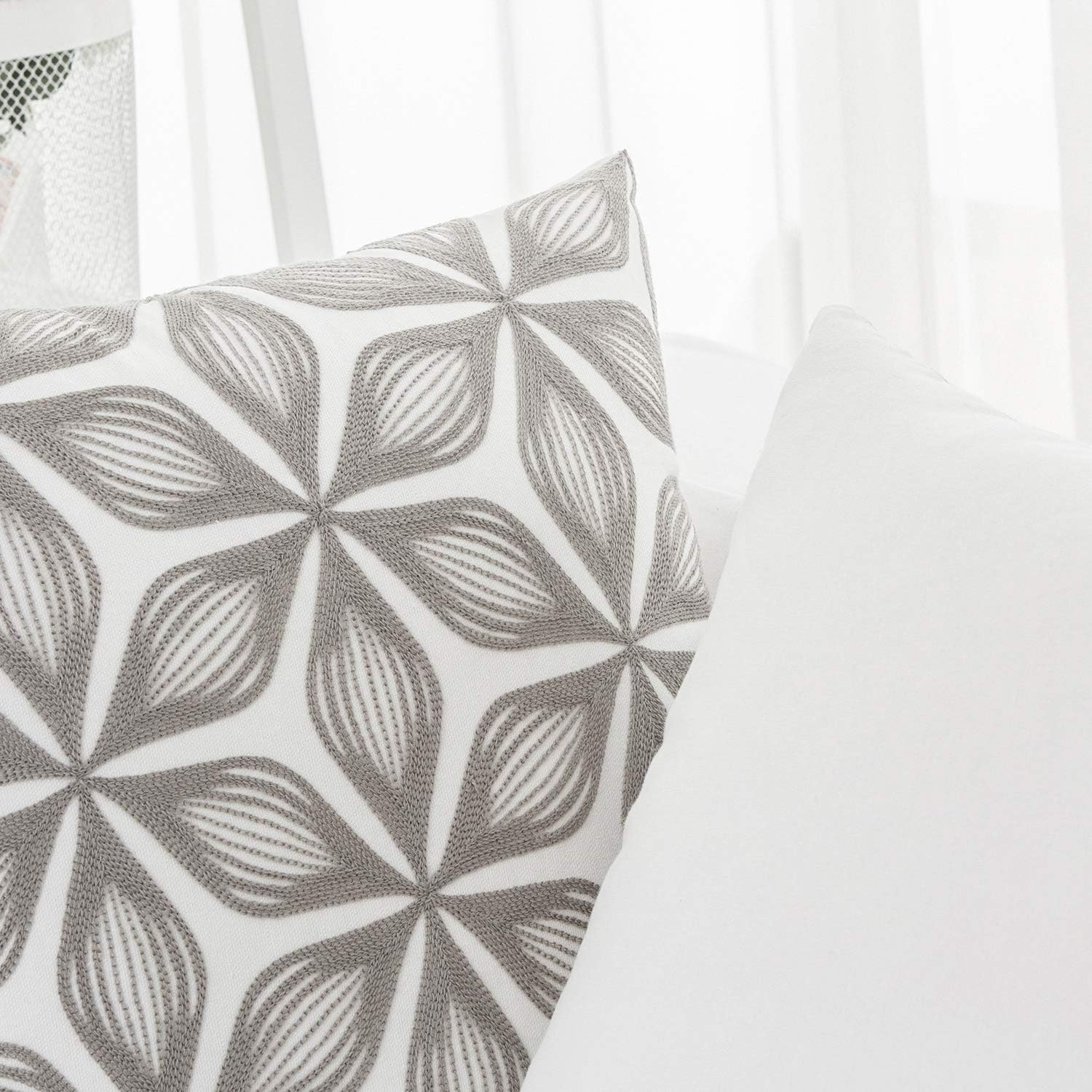 - Size & Material: This 18 x 18 inch (18 by 18) square throw pillow cover is made of 100% thick cotton canvas for durability. The crisp white fabric is soft yet sturdy, featuring beautiful single-sided embroidery for an elegant touch