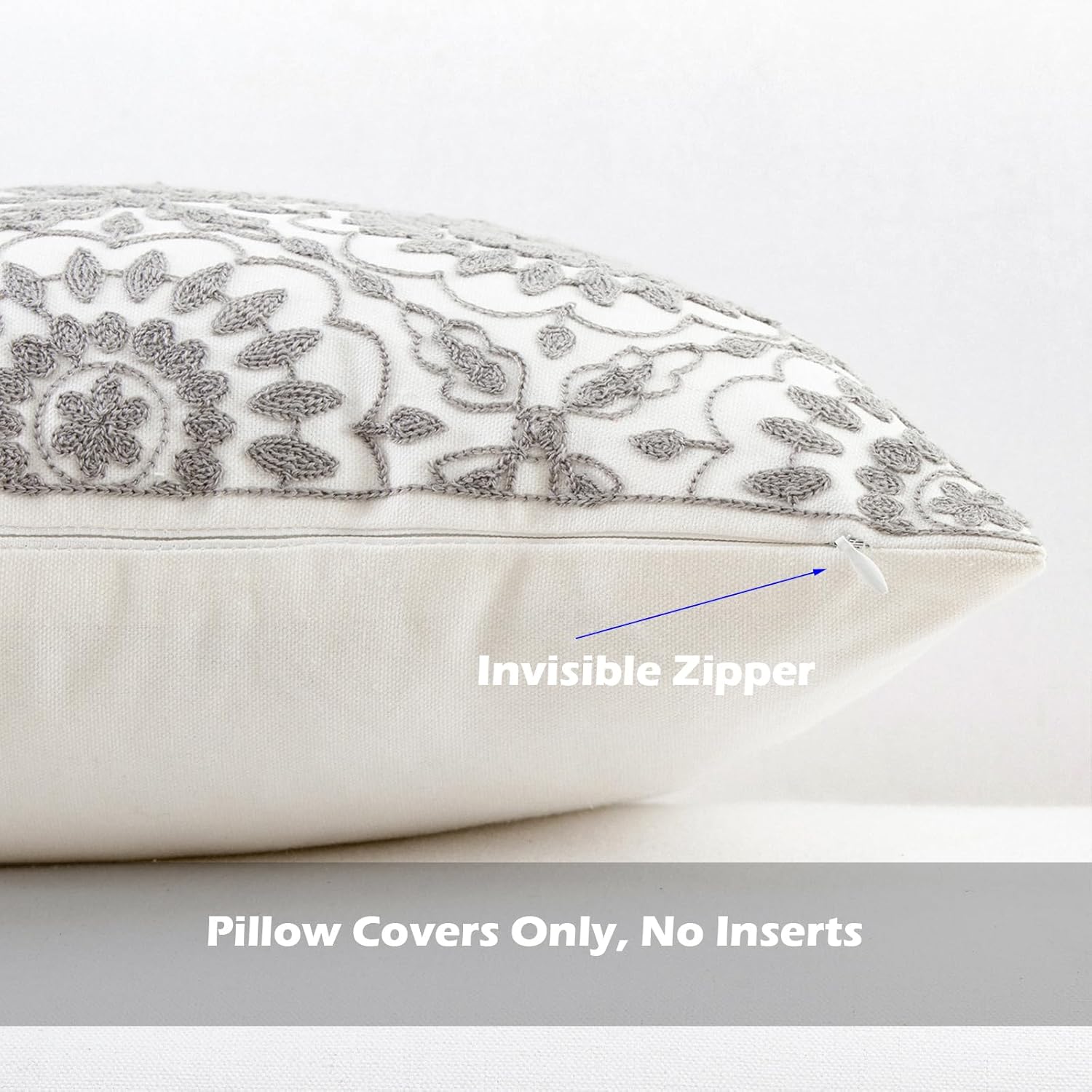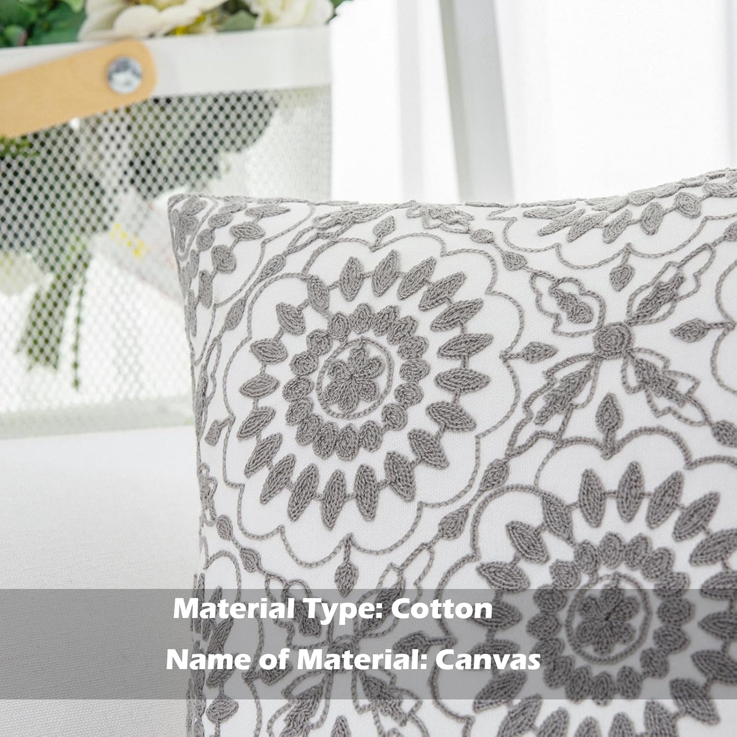 - Size & Material: This 18 x 18 inch (18 by 18) square throw pillow cover is made of 100% thick cotton canvas for durability. The crisp white fabric is soft yet sturdy, featuring beautiful single-sided embroidery for an elegant touch