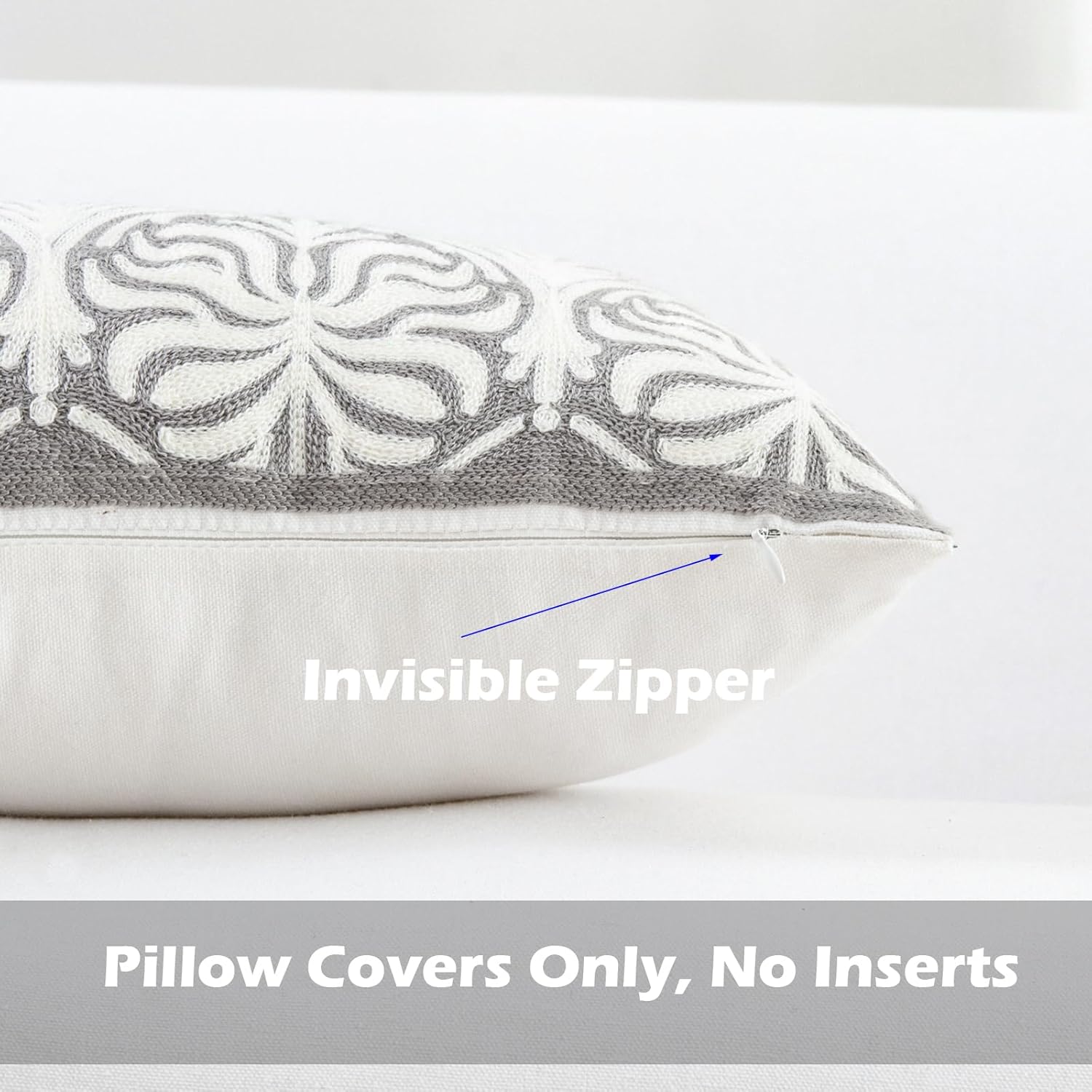HWY 50 Grey Gray Decorative Lumbar Pillow Cover Rectangle 12x20 Inch (1 Piece), Embroidered Cotton Farmhouse Cushion Cover Pillow Case for Sofa Couch Living Room Bed, Minimalist Floral