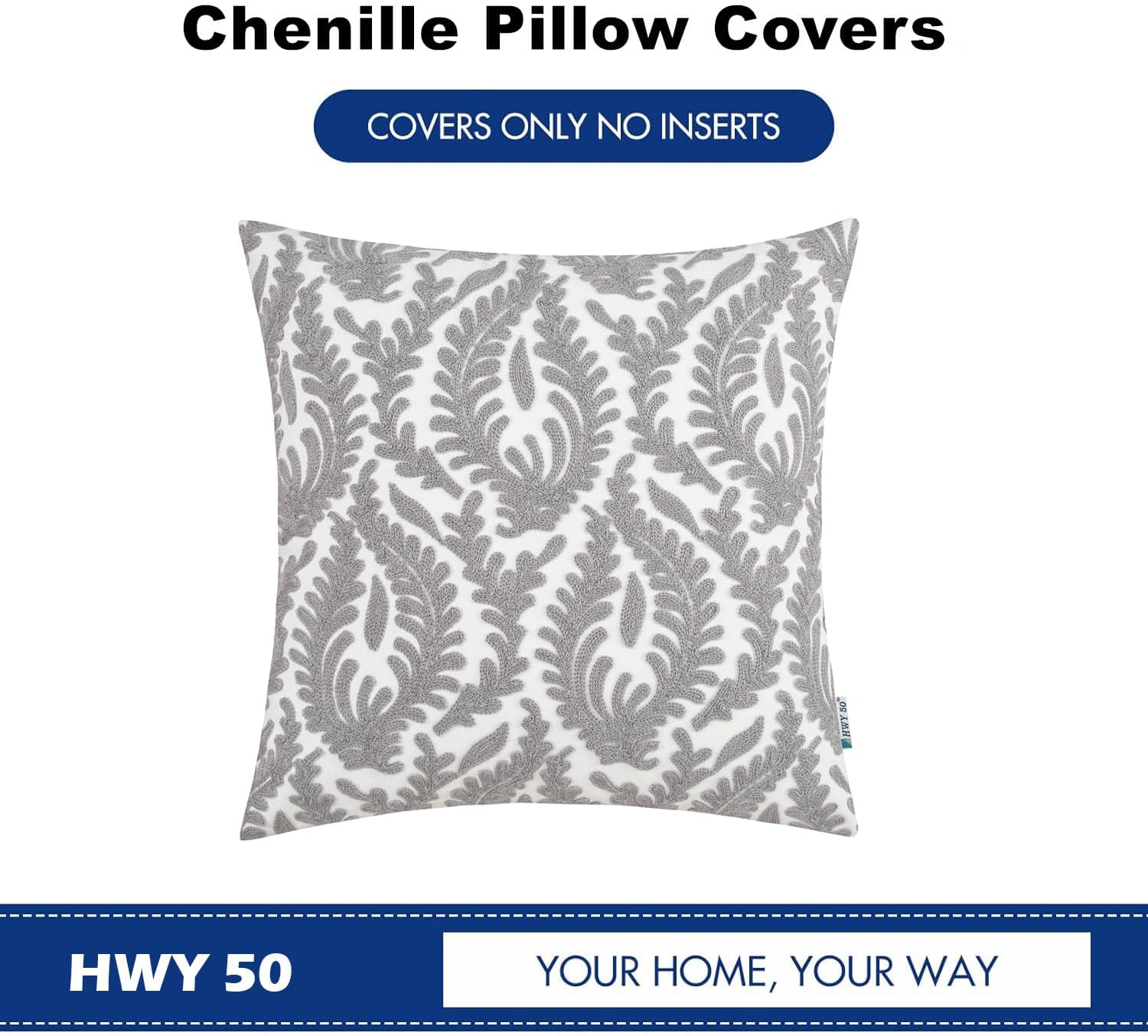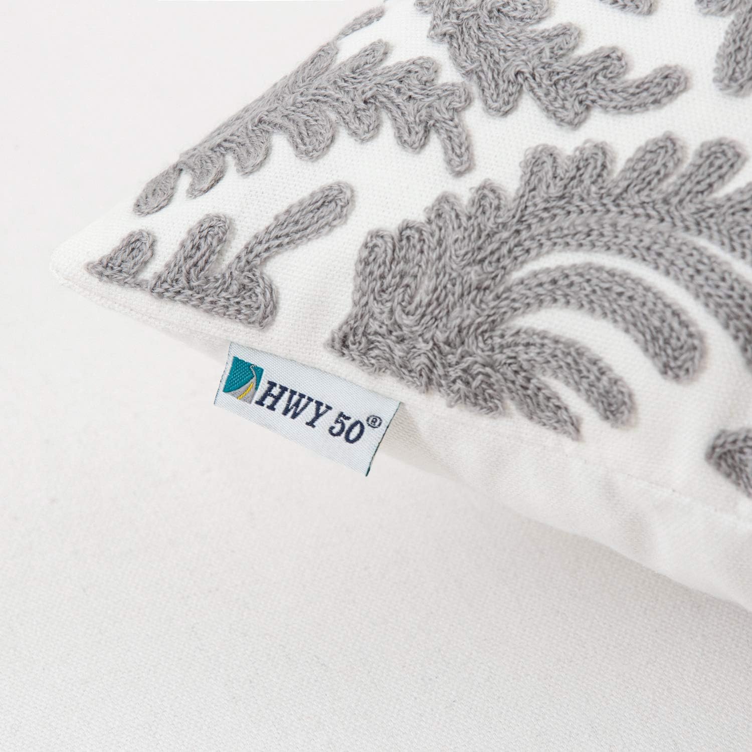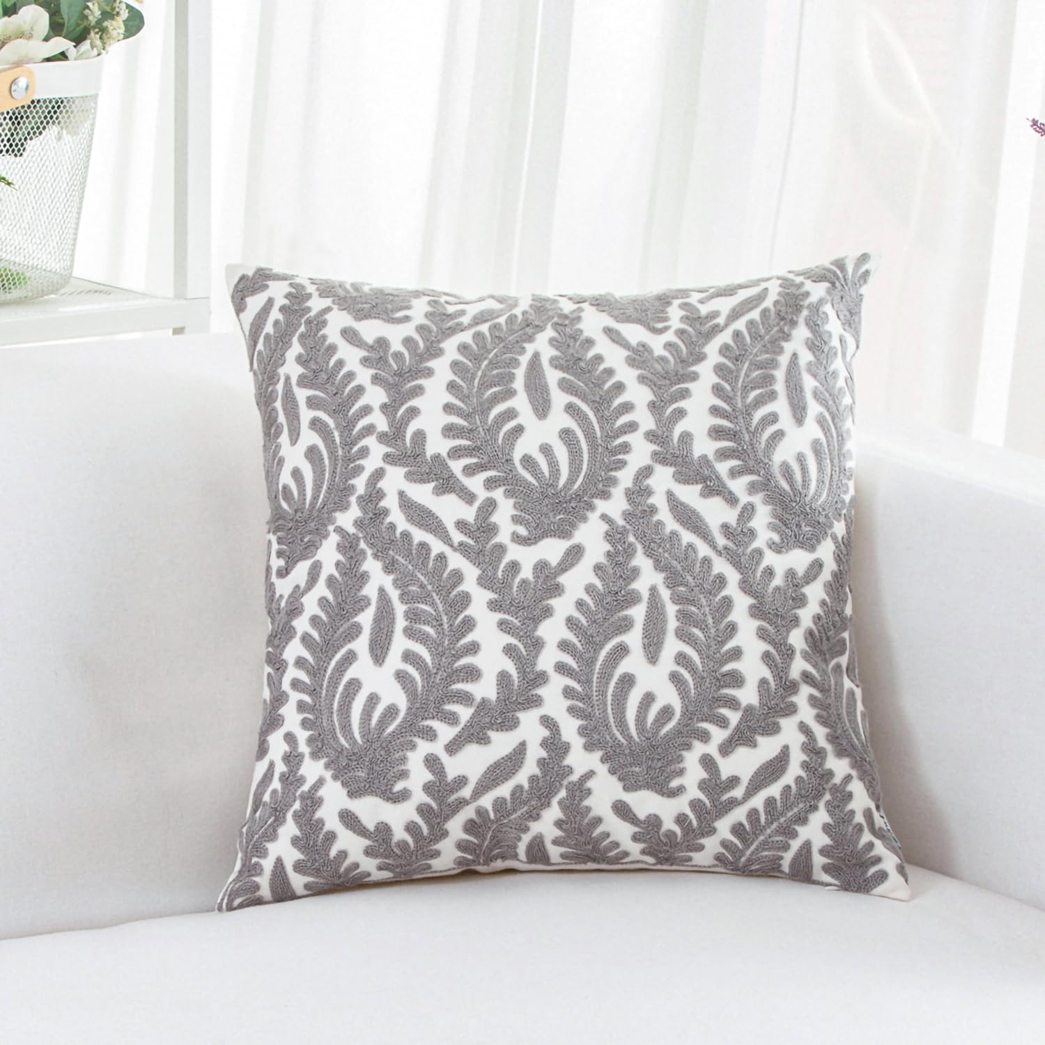 HWY 50 Grey Gray Decorative Throw Pillow Covers 18x18 Inch (1 Piece), Embroidered Cotton Farmhouse Cushion Cover Pillow Case for Sofa Couch Living Room Bed Bedroon, Floral Branches