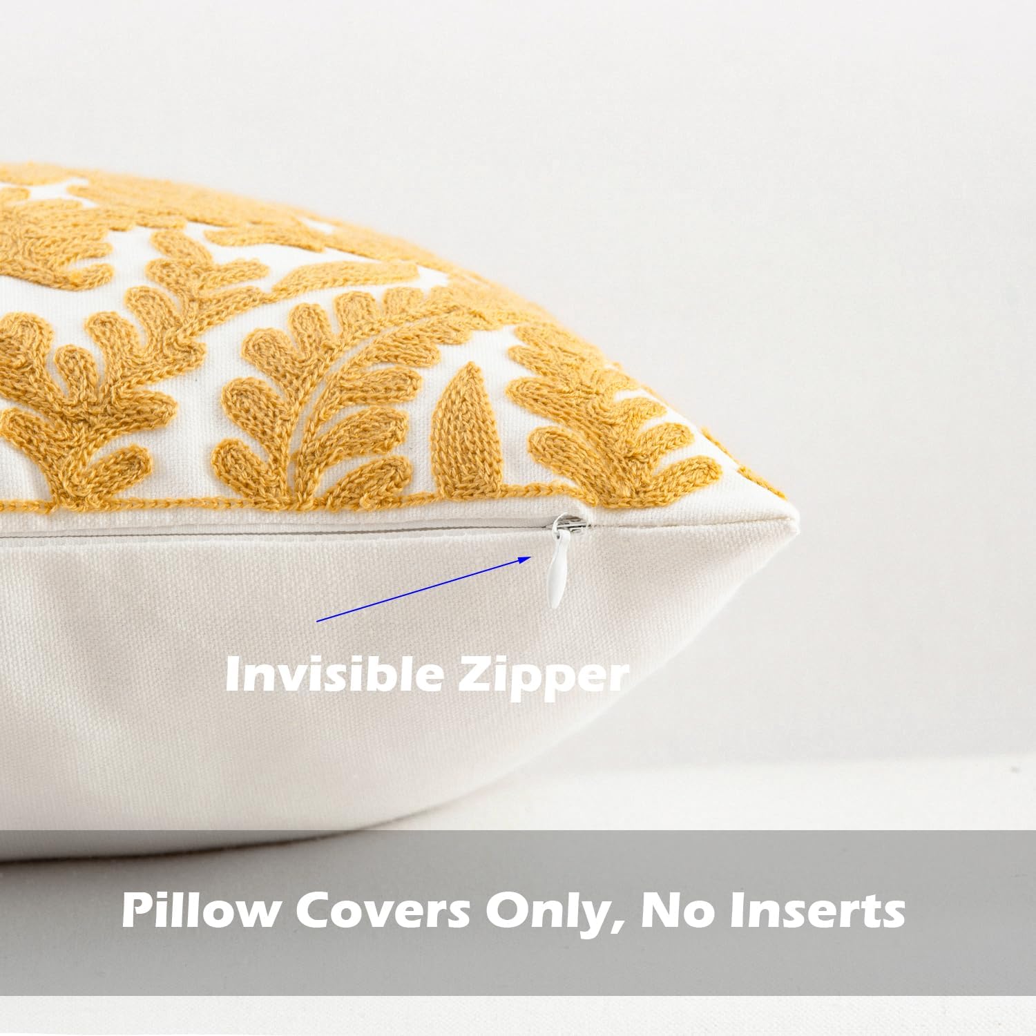 - Size & Material: This 18 x 18 inch (18 by 18) square throw pillow cover is made of 100% thick cotton canvas for durability. The crisp white fabric is soft yet sturdy, featuring beautiful single-sided embroidery for an elegant touch