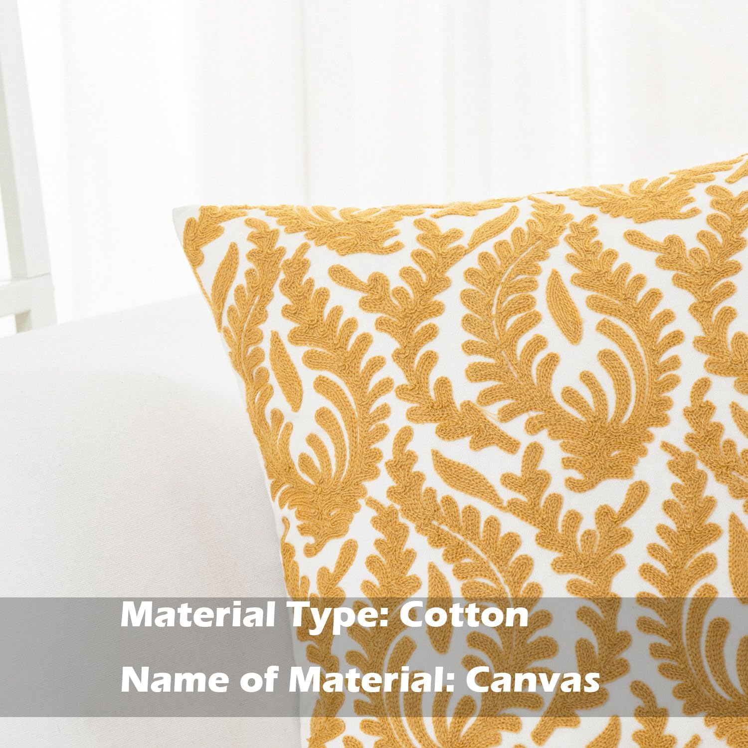 HWY 50 Mustard Yellow Decorative Throw Pillow Covers 18x18 Inch (1 Piece), Embroidered Cotton Farmhouse Cushion Cover Pillow Case for Sofa Couch Living Room Bed Bedroon, Floral Branches