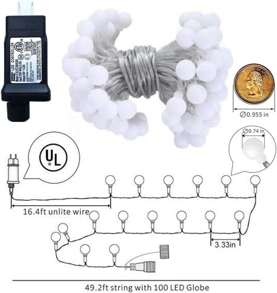 - Led Globe String Ligths: Plug in 100 LED 49ft(33ft String Lights,16ft Lead Wire) Warm White Globe String Lights-UL Listd, more durable