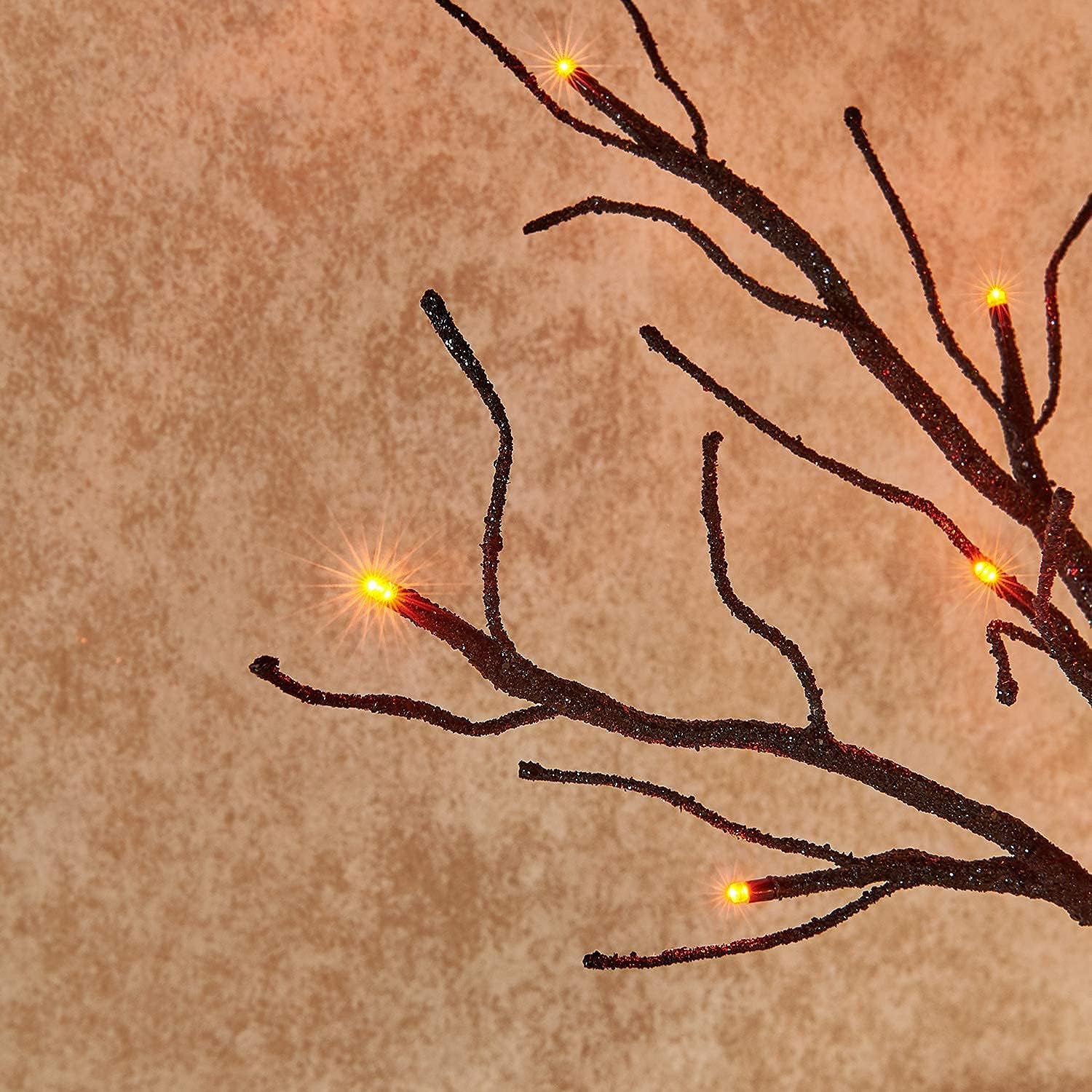 Hairui Lighted Tabletop Black Glittered Spooky Tree with Orange Lights 24 LED 18 Inches for Halloween Witch Decoration Battery Operated or USB Plug in Indoor Use