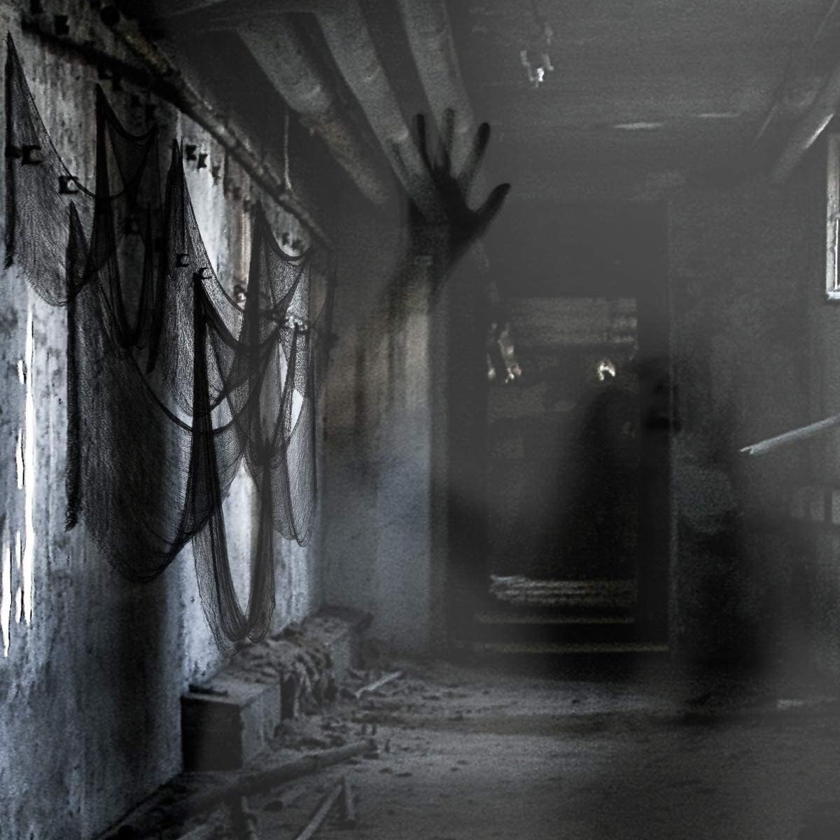 Biubee 5Pcs Halloween Black Creepy Cloth - Spooky Gauze Fabric Cloth for Haunted Horror House Halloween Party Doorway Outdoors Decoration (30" × 72")