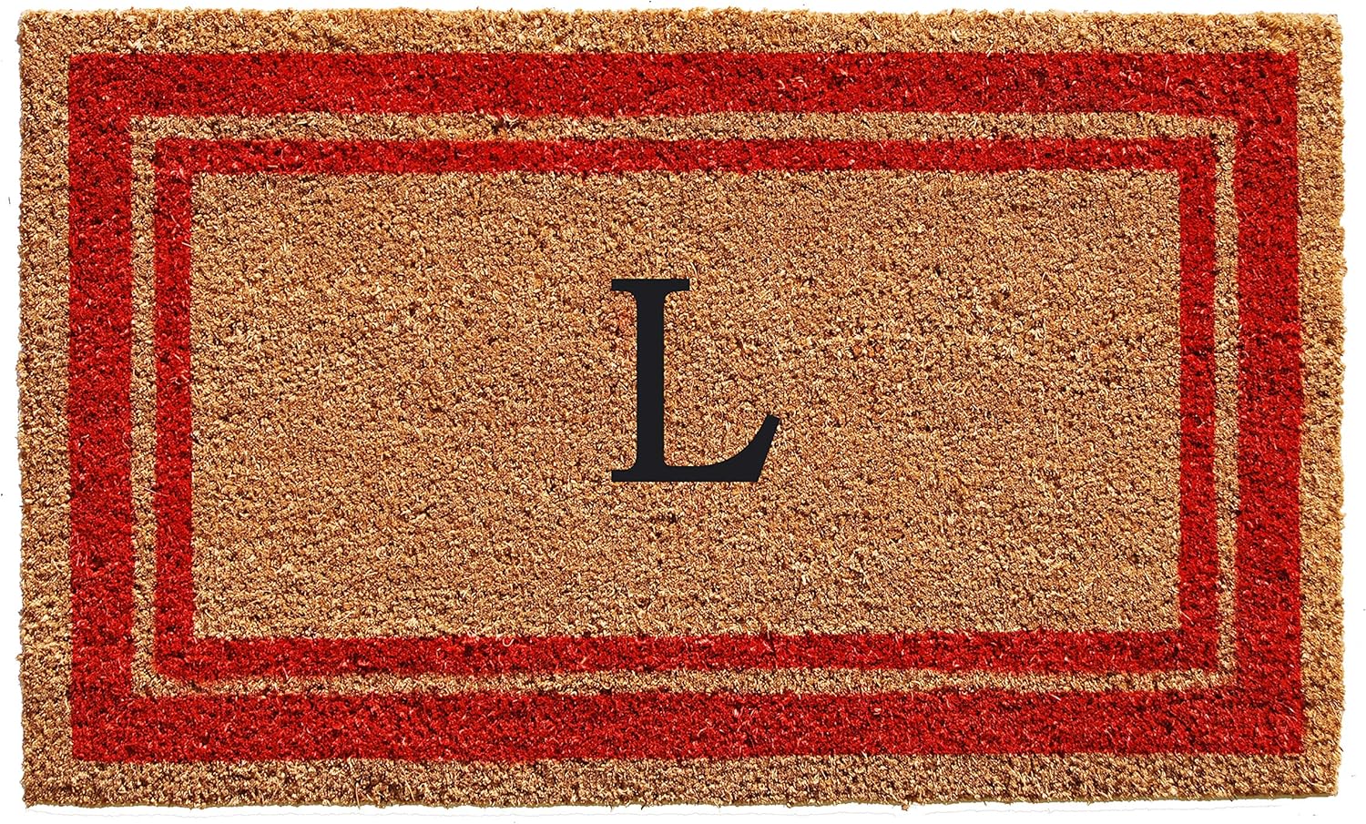 Calloway Mills 153031830L Red Border 18" x 30" Monogram Doormat, (Letter L)