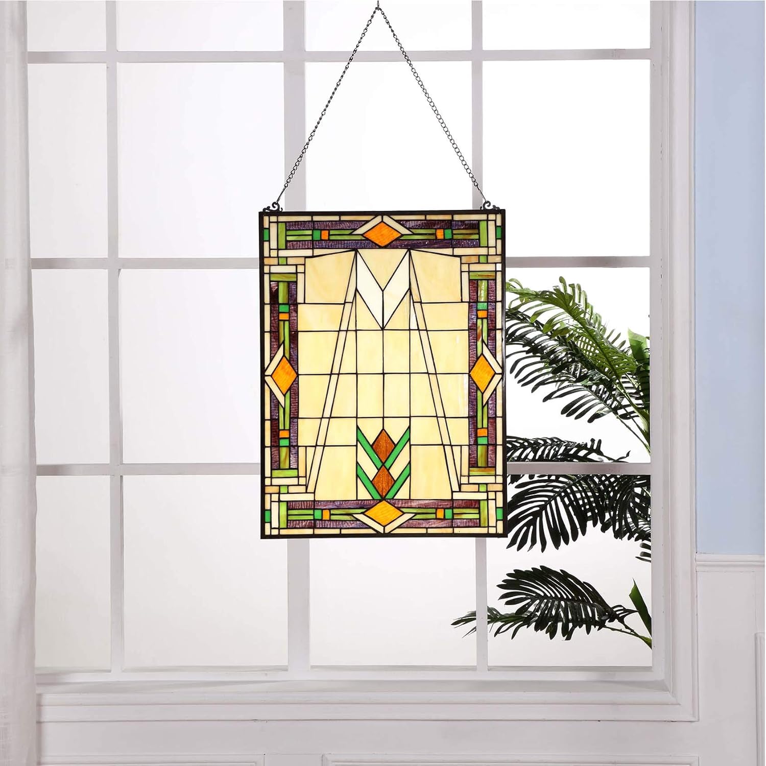 Bieye W10029 Mission Tiffany Style Stained Glass Window Panel Hangings with Chain, 18" W x 25" H