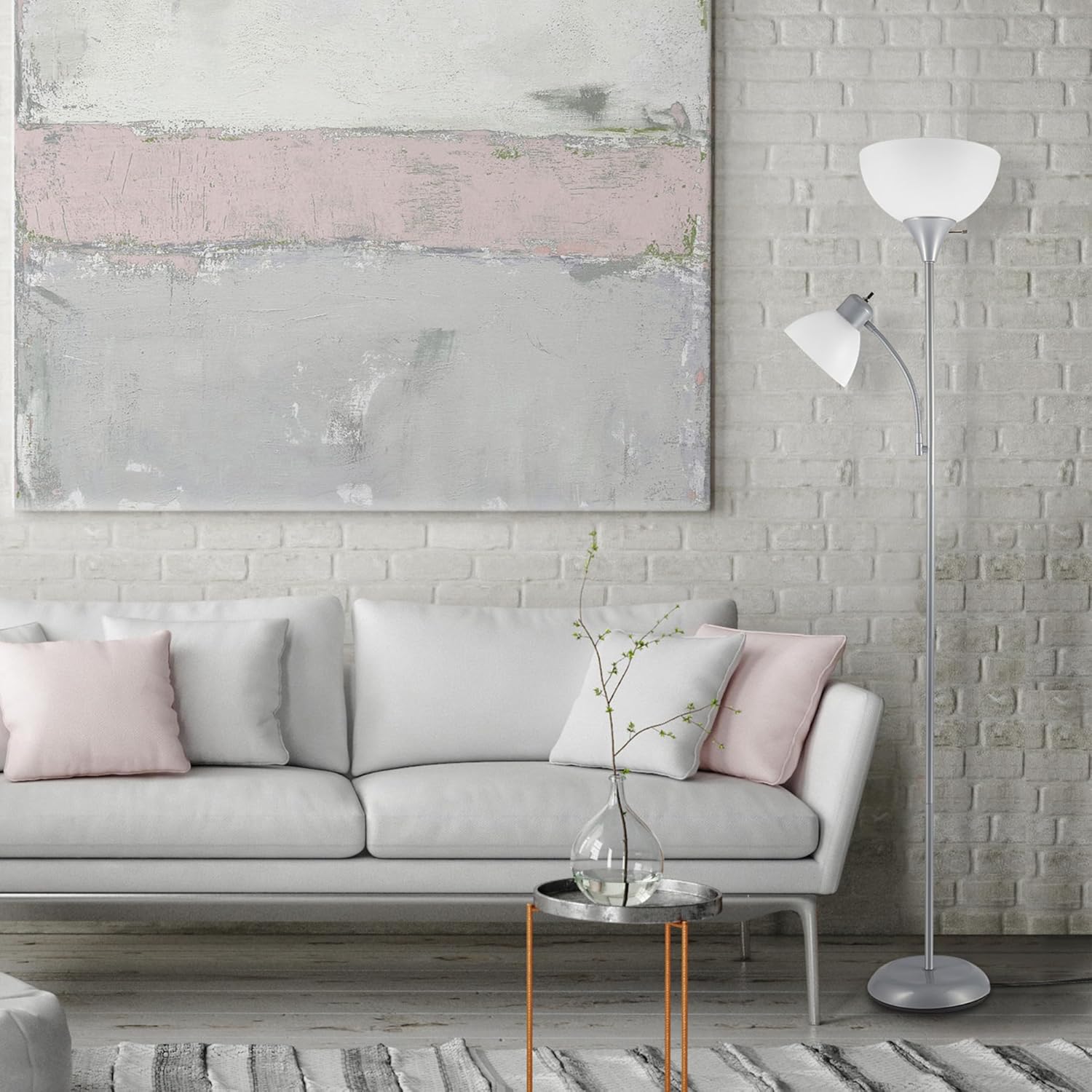 - EFFORTLESS PLACEMENT: the 5-foot cord and metallic silver color is perfect for placing the Delilah Floor Lamp anywhere you want - the hardest part is choosing the perfect room