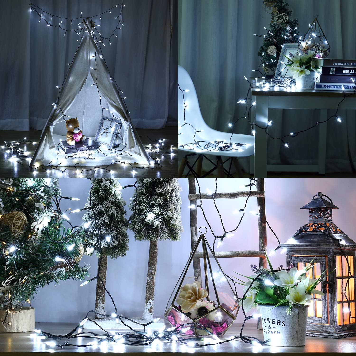 - Wide Applications: These mini string lights give off natural charming lighting, help you to create an amazing and romantic atmosphere in your home. Perfect for Christmas, wedding, party and other celebration occasions even daily lighting decoration. It can be easily wrapped trees, put or hung on the wall, window, door, tree, fence wreaths, patios, bushes, hedges, garland, fences, pergolas, pillars etc.