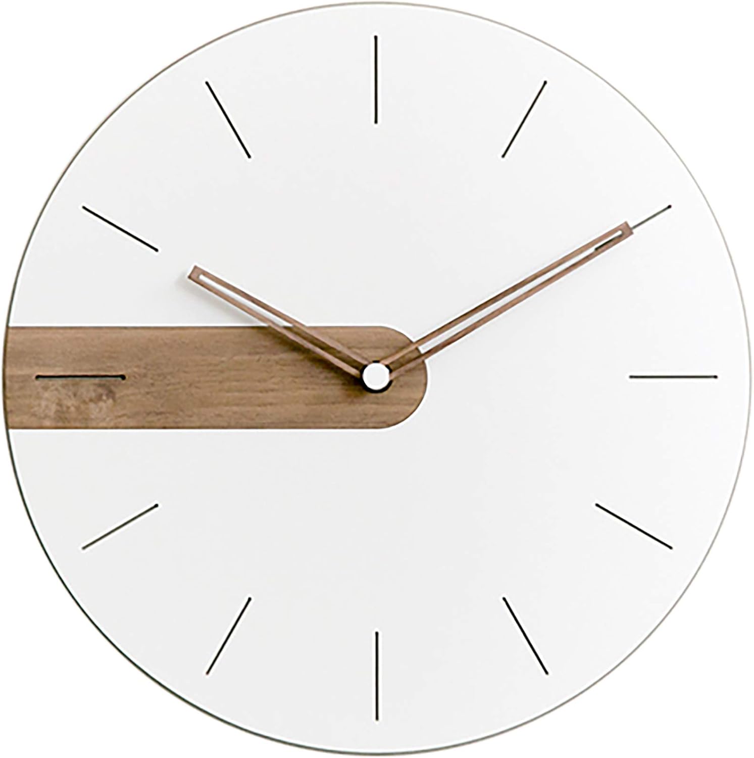 - Measures 11.4”X 11.4” and features a white FORESCOLOR ecoboard dial that is 0.2” thick. The clock hands are made of walnut wood and the clock face features our minimalist dial with a strip of exposed wood. Operates with 1 AA battery which is not included.