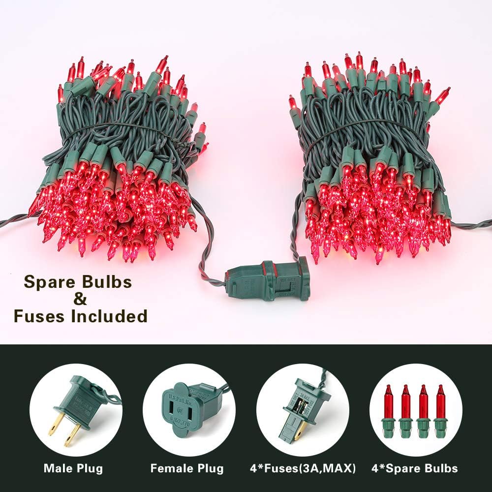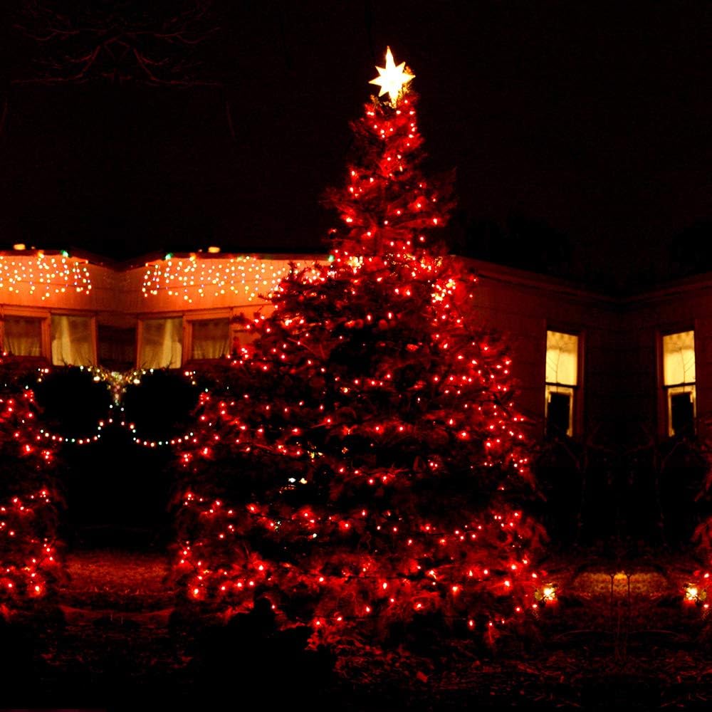 - 300 Counts Red Xmas Lights: Old-fashion red incandescent Christmas light set, creates a festive atmosphere, celebrates Christmas, New Year, Birthdays and special holidays, cast a magical look to your house and garden, and impress your family friends, and relatives with this easy to set up!