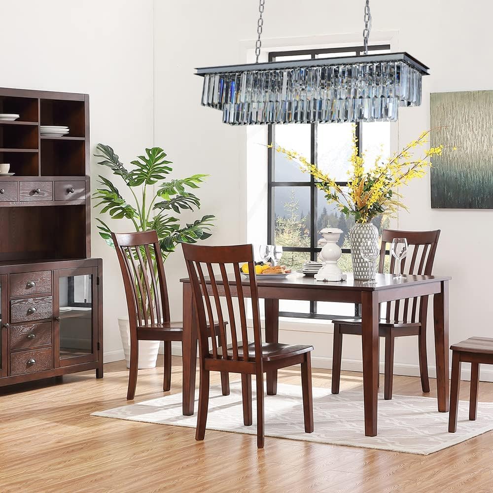 Luxury Chrome Rectangular Crystal Chandeliers Lighting Modern Pendant Ceiling Lights Rectangle Chandelier Lamp Fixture 8-Lights for Dining Room Kitchen Island