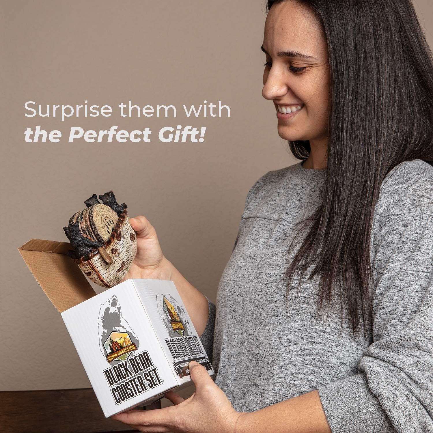 - 🐻 Makes the Perfect Gift – Our adorable bear coaster set makes the perfect housewarming gift for cabin decorations, rustic home decor, farmhouse decor, or simply as a unique coffee table feature for a man cave. Not to mention, the adorable canoeing bear characters make a great conversation piece!