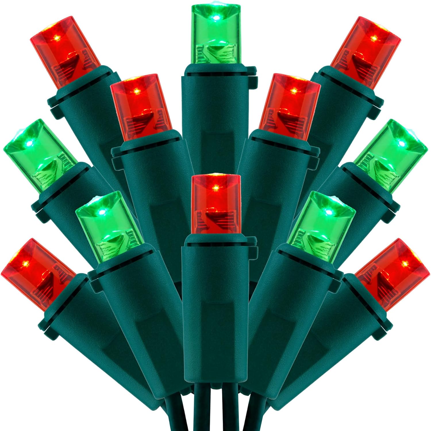 - Red-Green Interval ☀ Featuring 200 red & green 5mm LED bulbs, with 4-inch spacing, the red and green lights are arranged in intervals between each other. Red and green constitute the main colors of Christmas, and they are Christmas lights that will never go out of style. The wide angle bulbs feature multi-angle light source technology, providing a wide and even distribution of light. The independent light heads allow the light to diverge at multiple angles, ensuring that no corner of your Christ