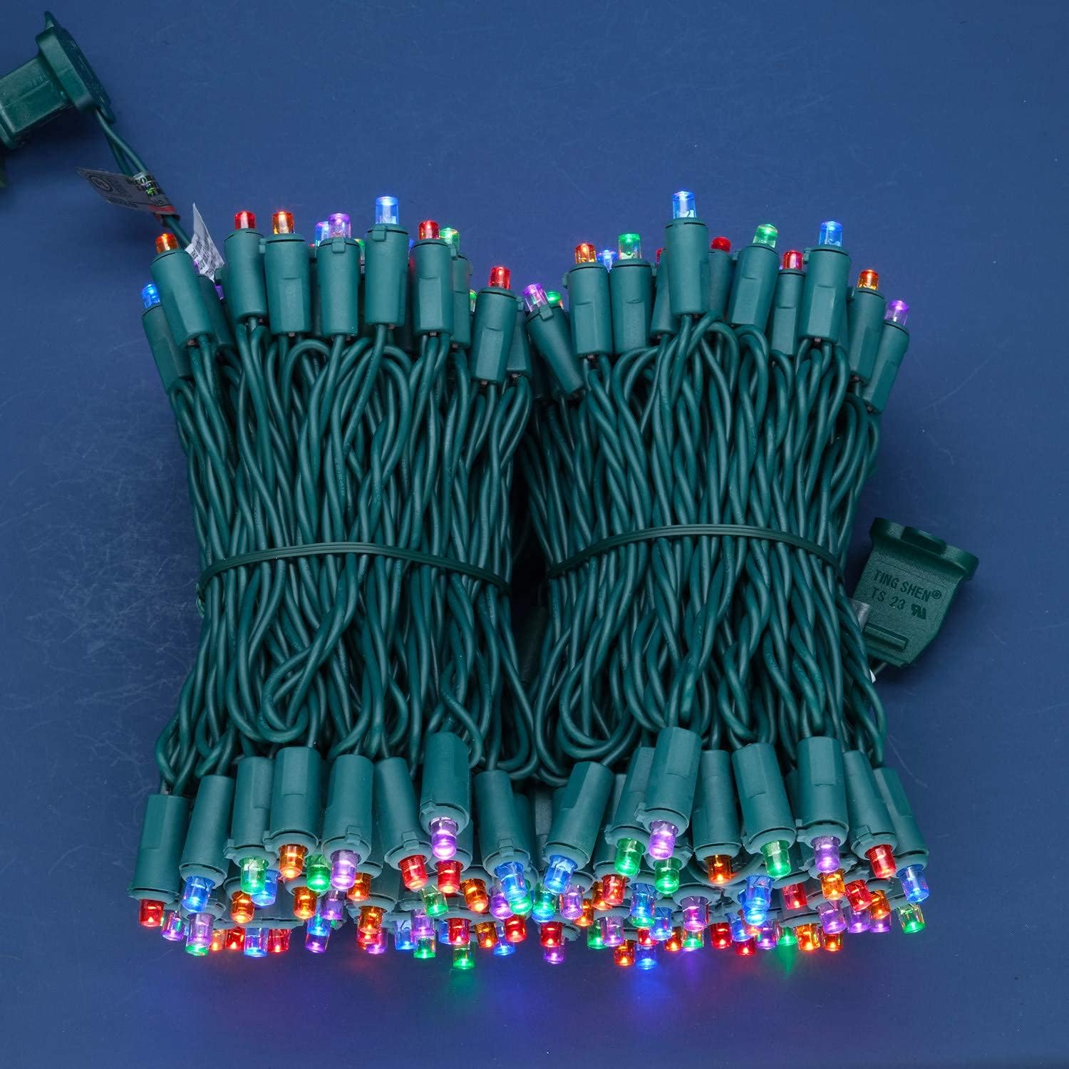 200 Count Multicolor Wide Angle LED Christmas Lights, 66 ft Green Wire UL Certified Commercial Grade 5mm Holiday String Light Set (Multicolor)