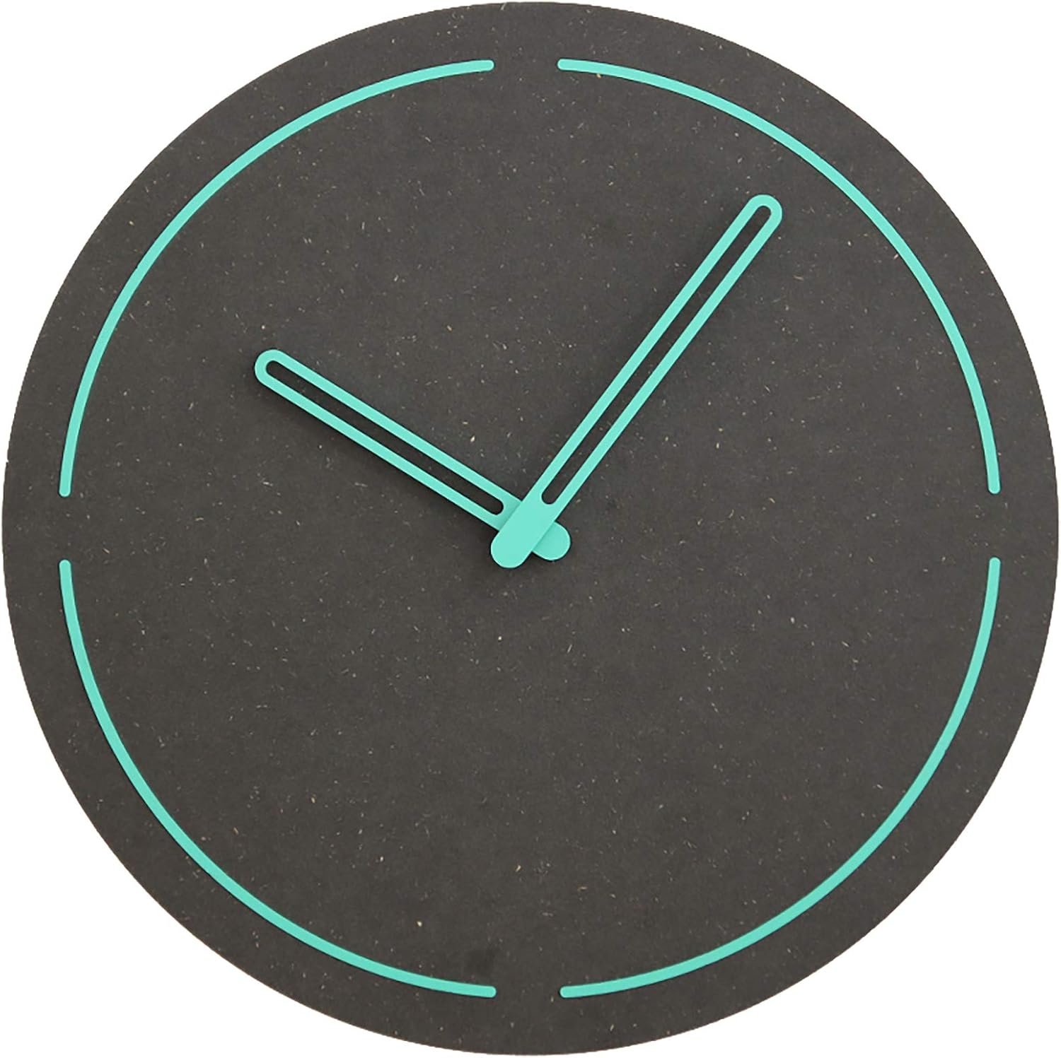 - Measures 10.25”X 10.25” and features a misty black FORESCOLOR ecoboard dial that is 0.2” thick. The teal clock hands are made of polished acrylic and the clock face has a matching minimalist design in teal. Operates with 1 AA battery which is not included.