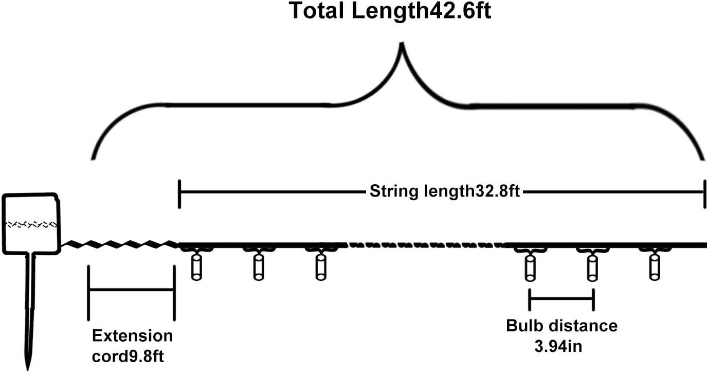 • Set of 2 Solar String Lights: Each solar powered outdoor string light has 100 light beads and is 42.6 feet long, so it is very suitable for wrapping around trees or any place you like to light up