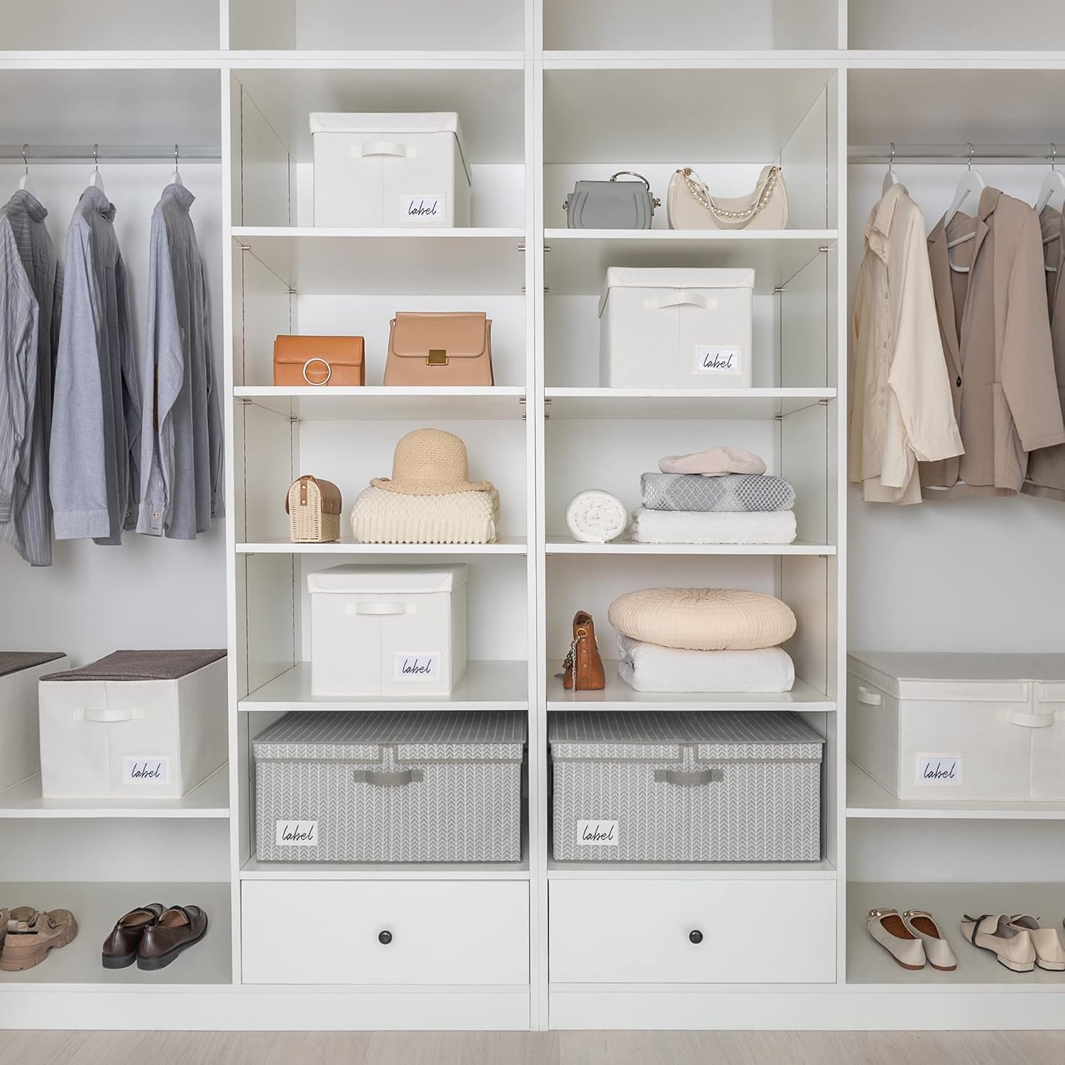 GRANNY SAYS Closet Storage Bins with lids, Fabric Storage Box with Lid, Clothes Bins Storage for Closet, Shelf Baskets for Living Room Wardrobe Shelves, Jumbo, Gray/White, 1-Pack