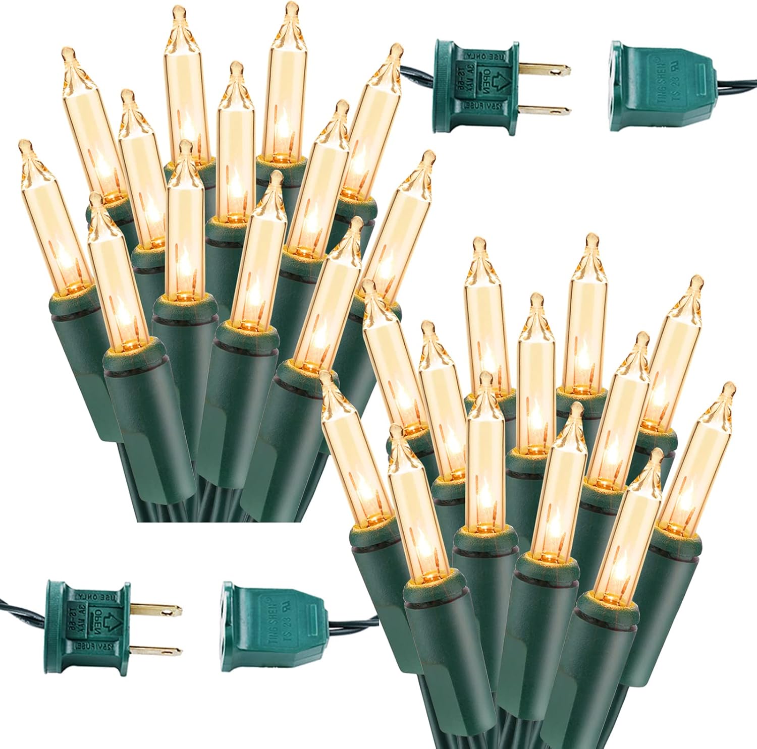 - End to End Connectable Warm Glow Christmas Lights: This mini Christmas light set is end to end connectable up to 3 sets (450 lights), expandable up to a longer 104.4ft length for any big project or small. UL certified, great value and quality, safety use.