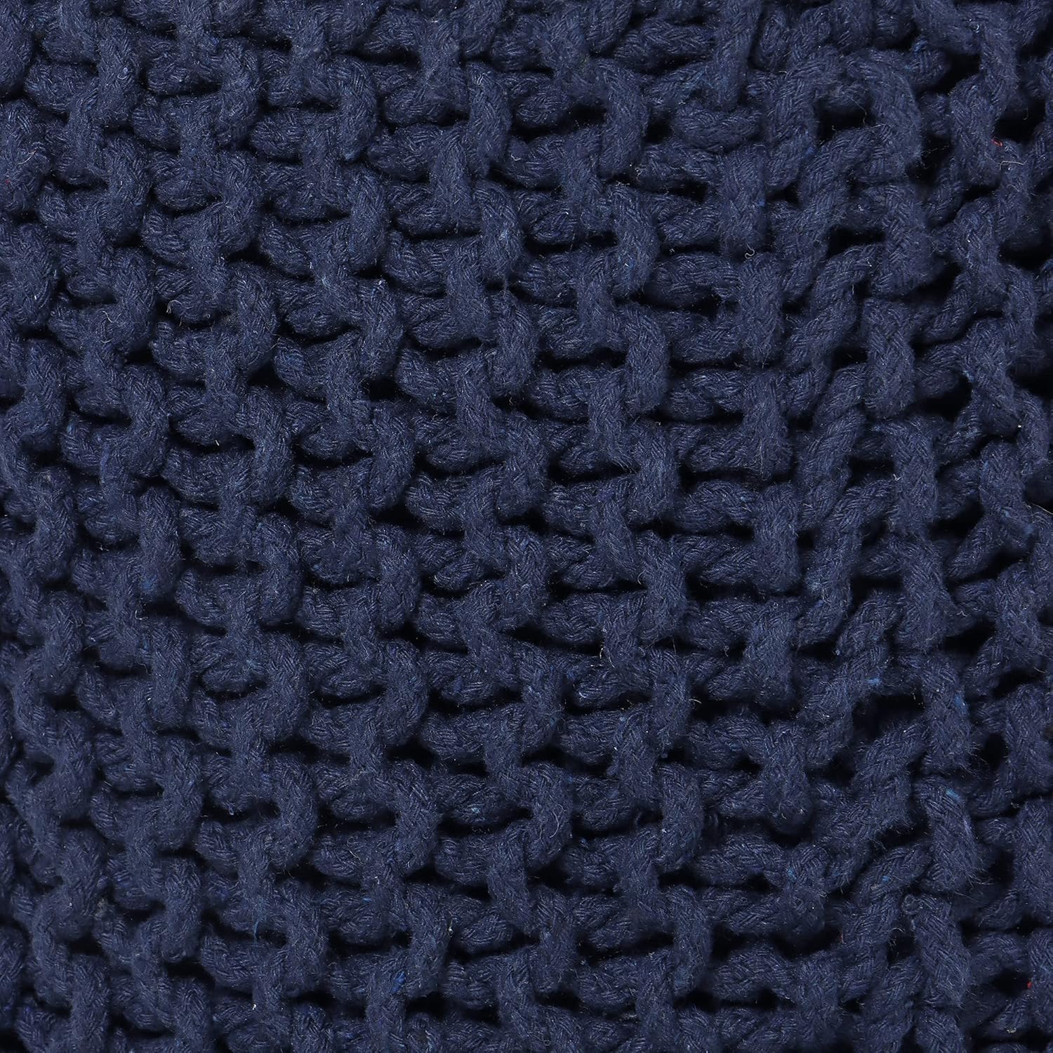 - HANDMADE FROM THE FINEST MATERIALS: The outer material on this eye-catching pouf ottoman is made from 100% cotton chord knitted in a unique pattern and filled with thermocol block inserts. Each floor pouf measures 16x16x16 inches and is handmade by our talented in-house artisans. This floor pouf is perfect when you need to rest your leg