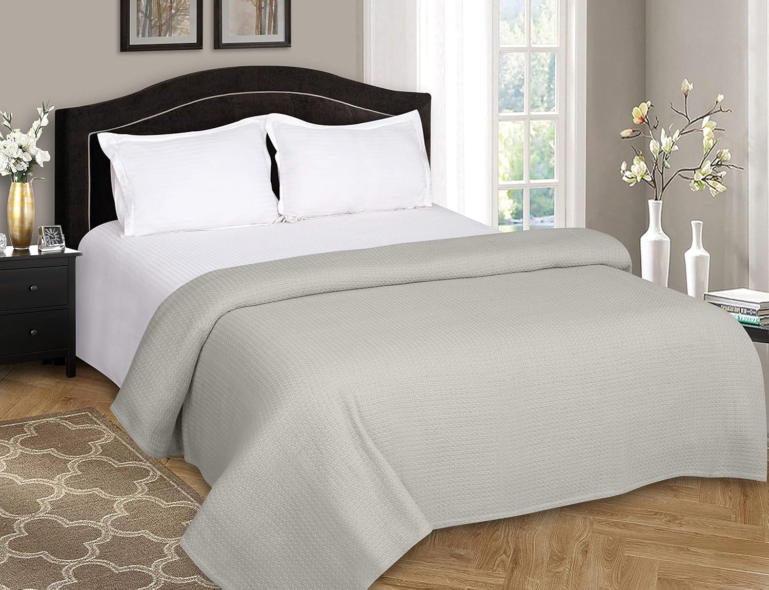 BELIZZI HOME 100% Cotton Bed Blanket, Breathable Bed Blanket King Size, Cotton Thermal Blankets King, Perfect for Layering Any Bed for All Season, Light Grey