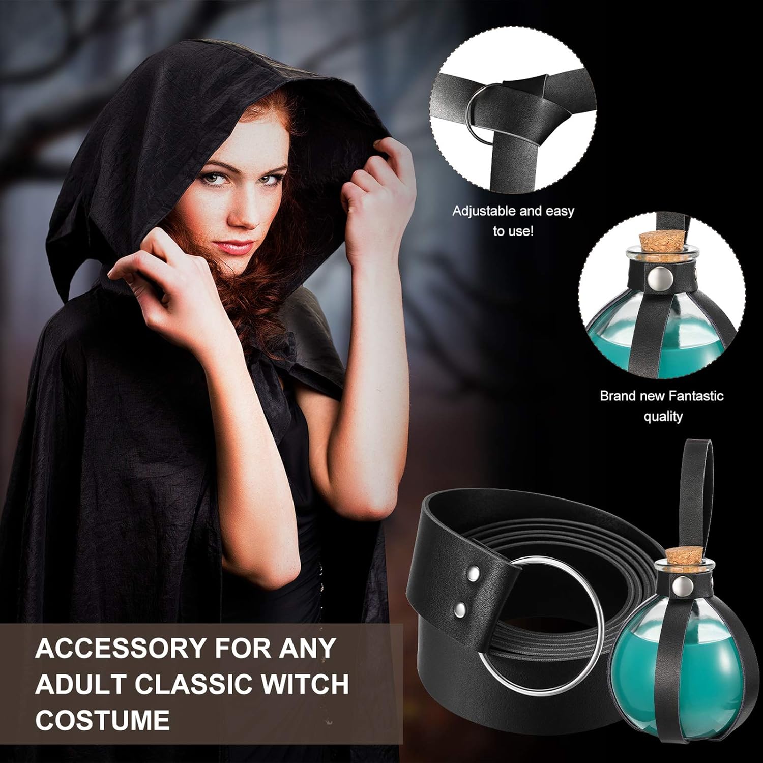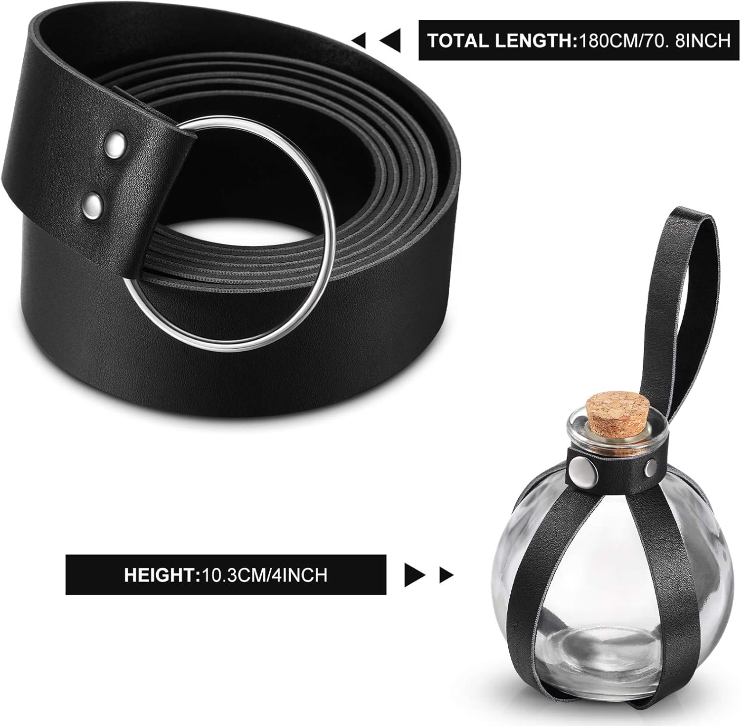 - What you get: package includes 1 piece 200 ml clear glass cork-top spherical ball bottle, equipped with a medieval leather belt, a wonderful combination that will help you add the finishing touch for any witch or wizard costume