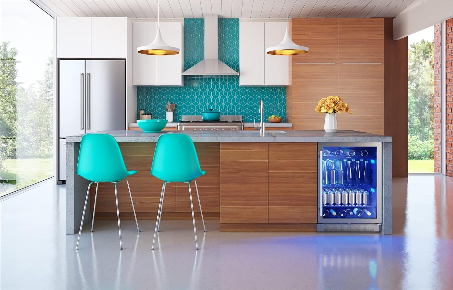 - 5 black wire racks with black trim, 304-grade stainless steel, and a dual-pane, 304-grade stainless steel, field-reversible door.