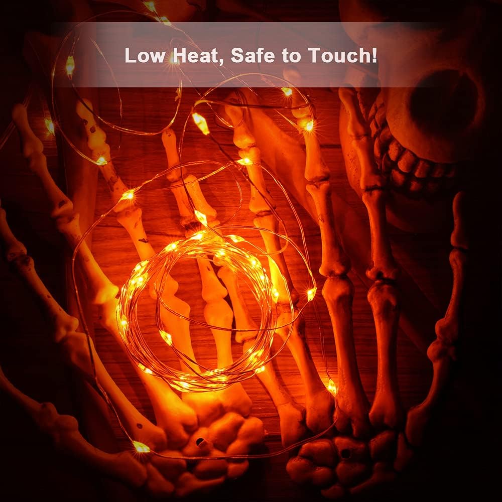 - Battery Orange Fairy Lights: 19.47ft long ultra-thin silver wire fairy lights with 60pcs vibrant and high bright micro LED (4 pack total 77.88ft, 240 LED, 0.33ft bulbs space, emitting orange light bring you creative atmosphere for all kinds of festivities including costumes, masks, accessorizing themed parties, birthdays, Halloween and Christmas.