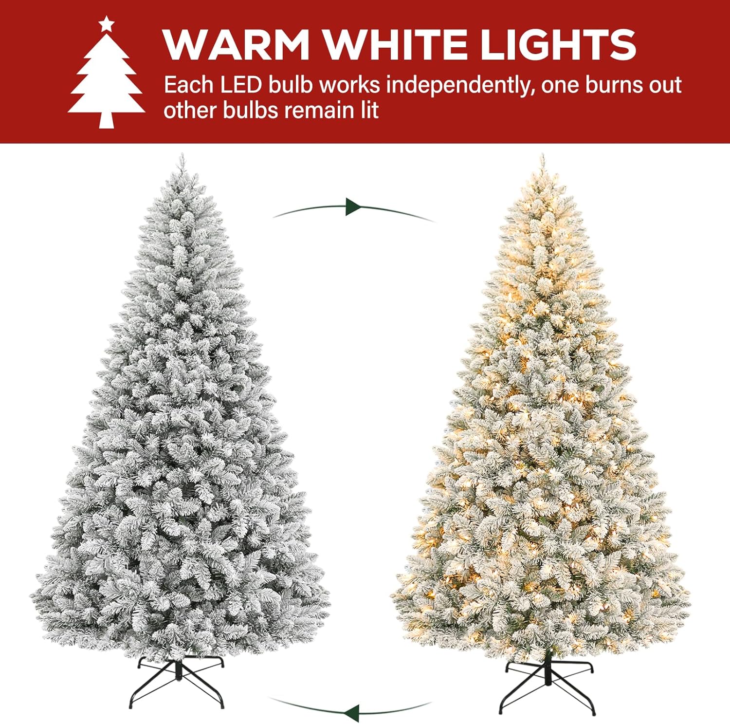 Hykolity 6 ft Prelit Snow Flocked Christmas Tree, Artificial Christmas Tree with 250 Warm White Lights, 1032 Tips, Metal Stand and Hinged Branches