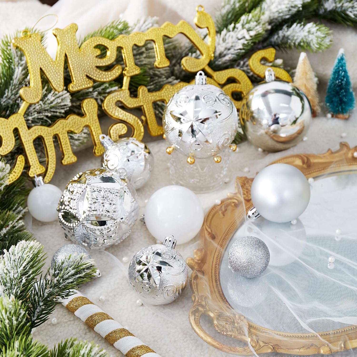 87-Pack Shatterproof Christmas Ball Ornaments Set, Christmas Tree Decorations with Hand-held Gift Package for Xmas Tree Holiday Wedding Party, Silver