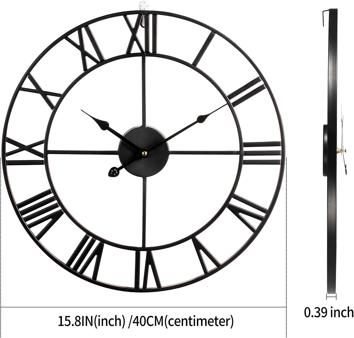 - [Industrial Clock] The large metal clock has a hollowed-out retro design. The strength and retro appearance of the Roman wall clock are ensured by the use of high-quality materials in the handcrafted, solid iron frame.