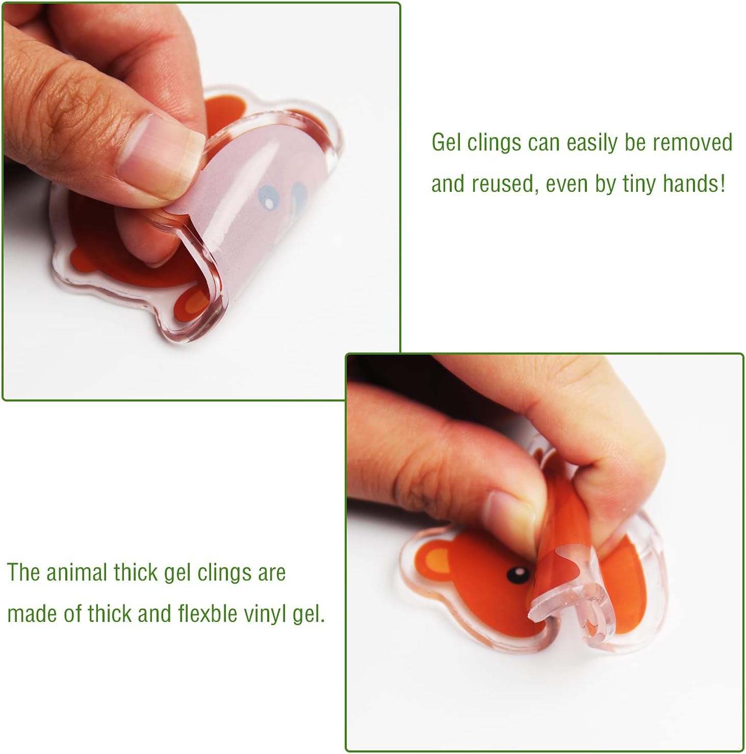 - Note: The Jungle thick gel clings are not edible.These thick gel window clings are suitable for children 5 years old and above to play, there is a risk of suffocation, need to be accompanied by an adult when playing.
