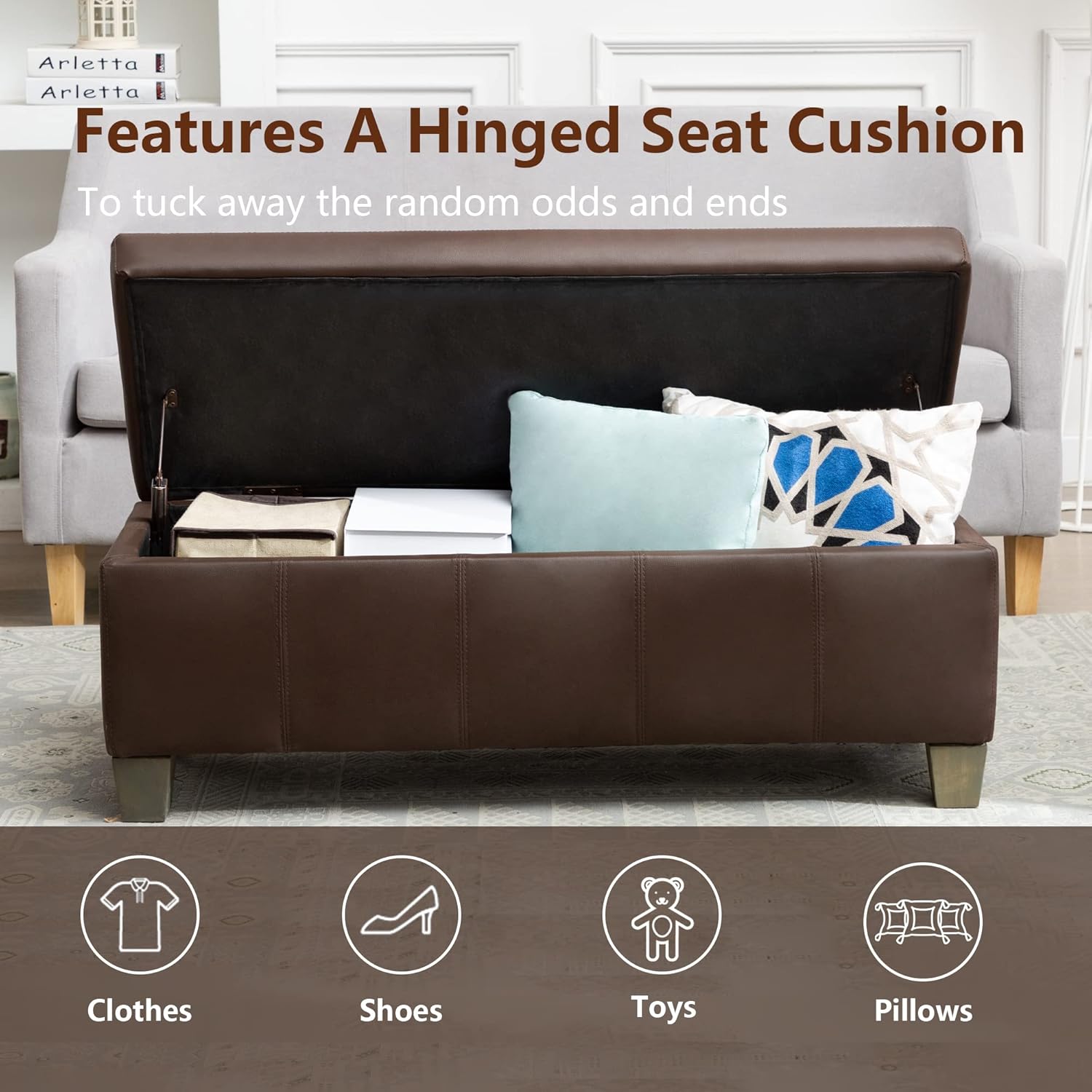 Brown Faux Leather Ottoman with Storage, Rectangular Extra Long Storage Bench for Bedroom and Living Room