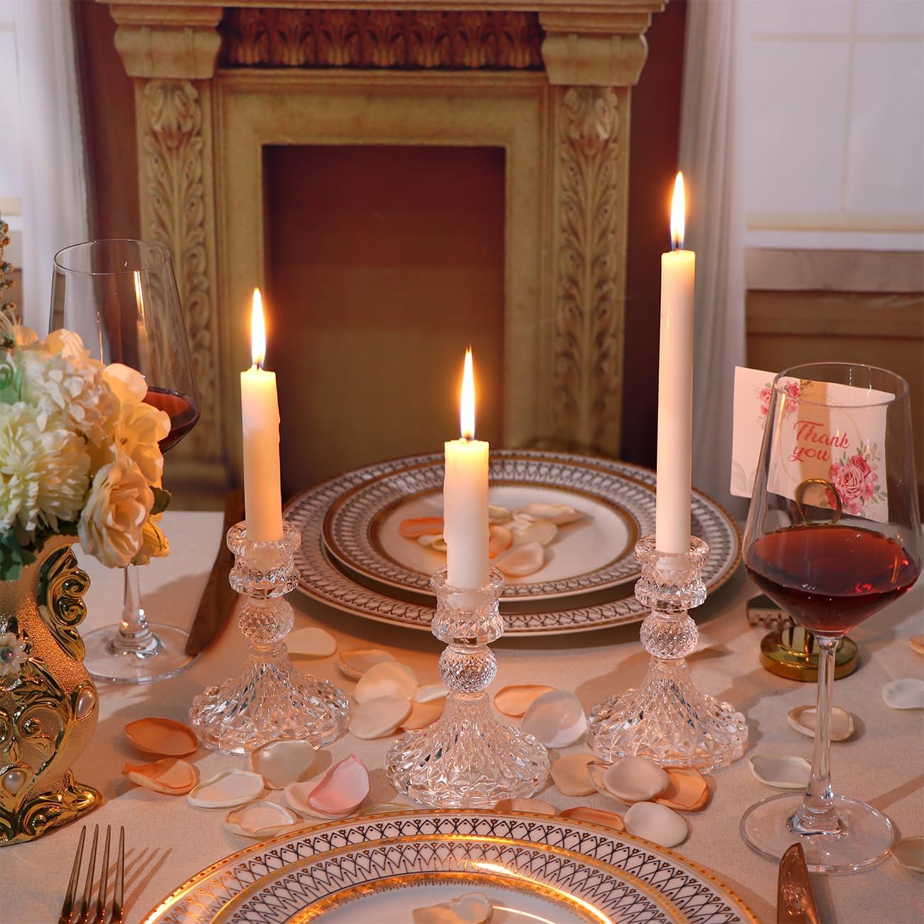 Candlestick Holders Set,12Pcs 4" H Taper Candle Holders Bulk, Clear Glass Candle Holders for Wedding, Spring Party, Romantic Dinner, Festival & Windowsill Decor