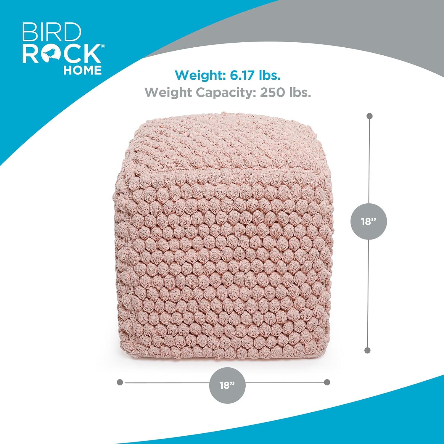- PRODUCT SPECS: The pouf measures 18” L x 18” W x 18” H and weighs 6.17 lbs. Made from durable cotton with bead filling and a sturdy inner box, it combines comfort with long-lasting use. Care is simple—spot clean with a damp cloth for easy maintenance.