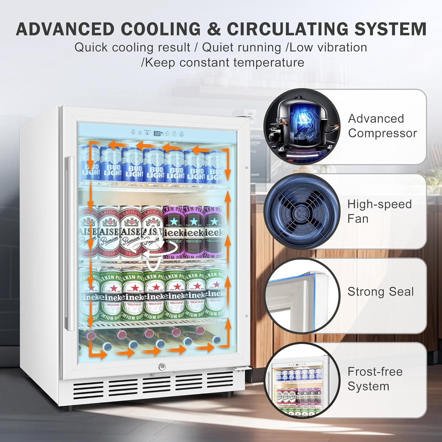 - Versatile Beverage Storage: The 24 inch beverage refrigerator or undercounter beverage refrigerator offers a generous 4.9 cu. ft capacity, accommodating up to 150 cans, making it the perfect cooler for your favorite drinks, whether it's beer, soda, or beverage