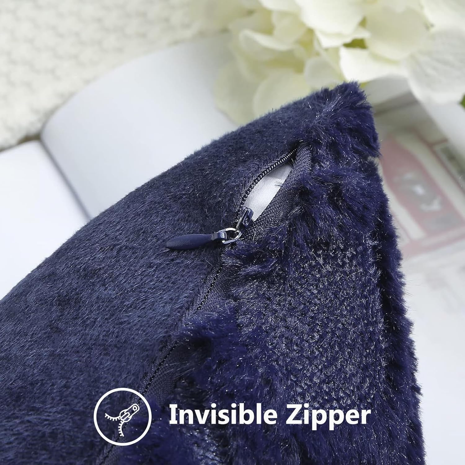 decorUhome Fall Throw Pillow Covers 18x18 Inch Set of 2, Soft Plush Decorative Faux Fur Navy Blue Solid Couch Pillow Covers, Accent Farmhouse Neutral Square Euro Pillow Cases for Sofa Bed Living Room
