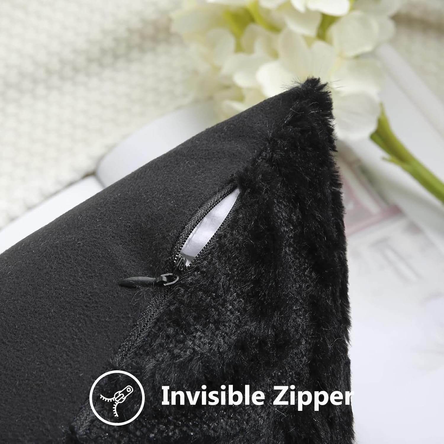 decorUhome Fall Throw Pillow Covers 24x24 Inch Set of 2, Soft Plush Decorative Faux Fur Black Solid Couch Pillow Covers, Accent Farmhouse Neutral Square Euro Pillow Cases for Sofa Bed Living Room