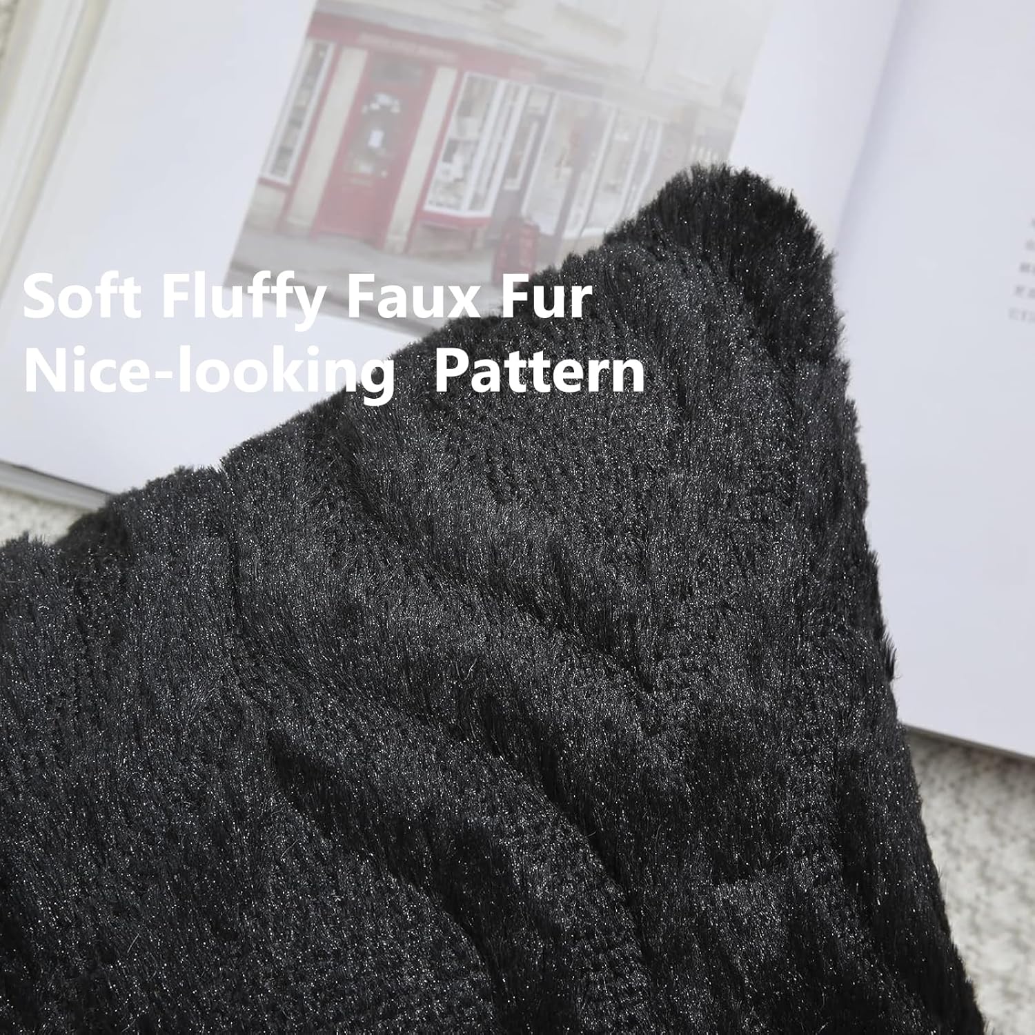 decorUhome Fall Throw Pillow Covers 18x18 Inch Set of 2, Soft Plush Decorative Faux Fur Black Solid Couch Pillow Covers, Accent Farmhouse Neutral Square Euro Pillow Cases for Sofa Bed Living Room