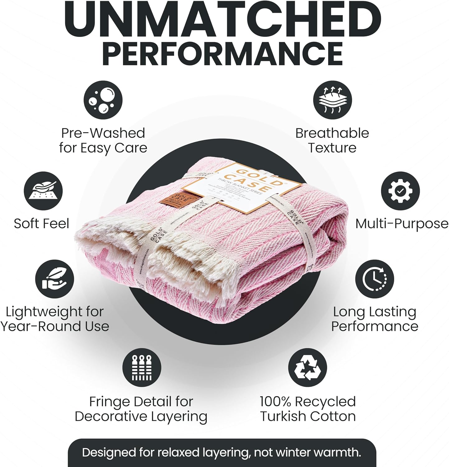 Gold Case Throw Blanket for Couch – 100% Recycled Turkish Cotton Blankets & Throws – Elegant Decorative Throw Blankets for Living Room Sofa – Woven Throws for Couch – Retro Pink – 50x60