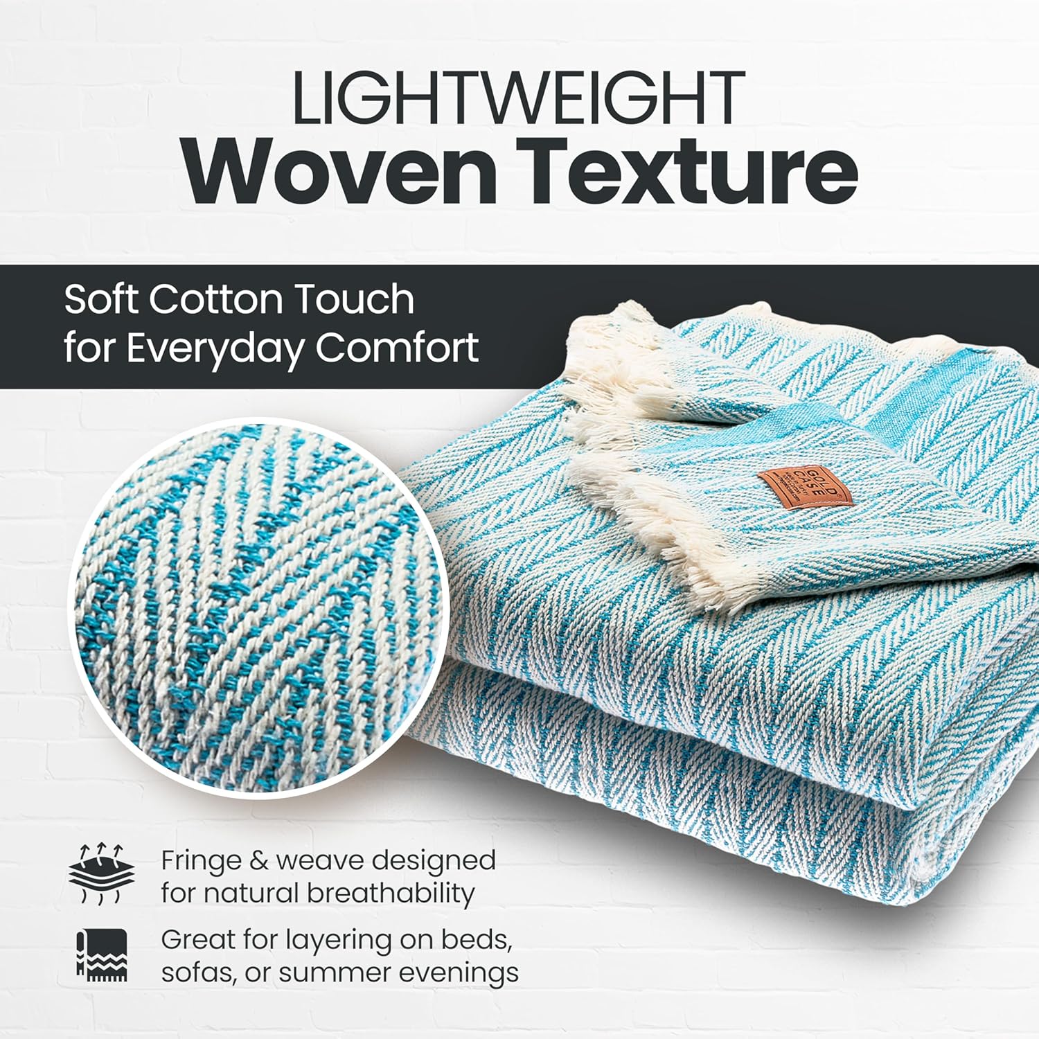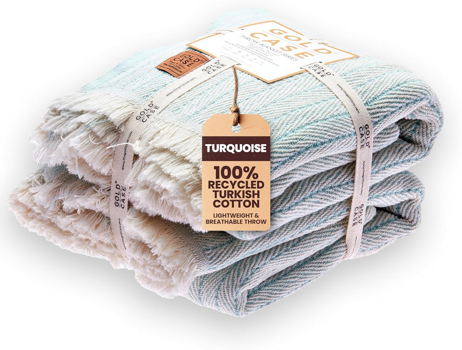 Gold Case Throw Blanket for Couch – 100% Recycled Turkish Cotton Blankets – Elegant Decorative Throw Blankets for Living Room Sofa – Woven Throws for Couch – Vintage Turquoise– 50x60 (Set of 2)
