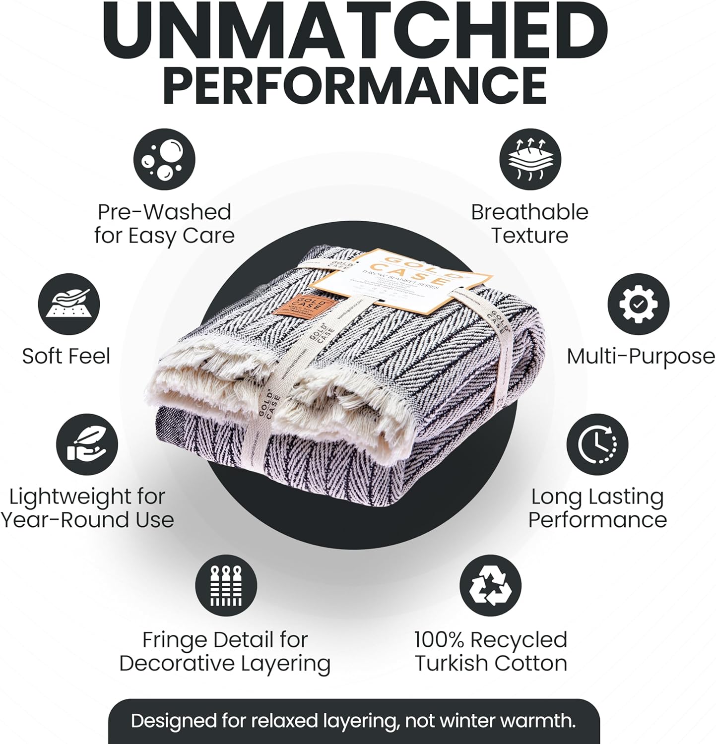 Gold Case Throw Blanket for Couch – 100% Recycled Turkish Cotton Blankets & Throws – Elegant Decorative Throw Blankets for Living Room Sofa – Woven Throws for Couch – Vintage Black – 60x80