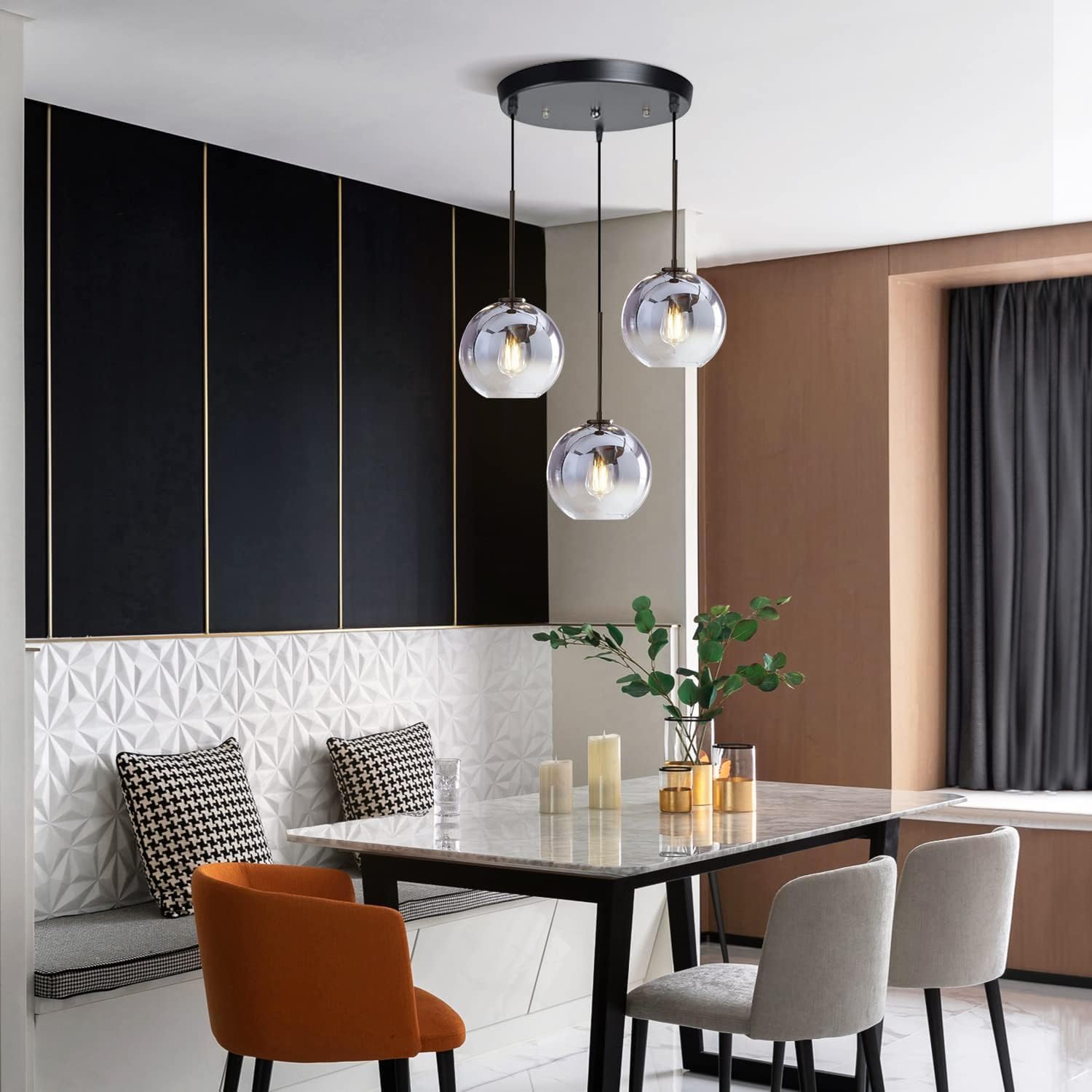 - Widely Used and Charming Decoration: The 3 light globe chandelier cluster pendant light is suitable for bedroom, dining room, living room, study room, bathroom, bookcase, laundry room, study room, meeting room, entrance, corridor, stairwell, balcony, porch, gazebo, balcony, passageway, etc, and kitchen pendant lighting over island black is also ideal for commercial areas, such as bar, coffee hall, office, hotel and restaurant