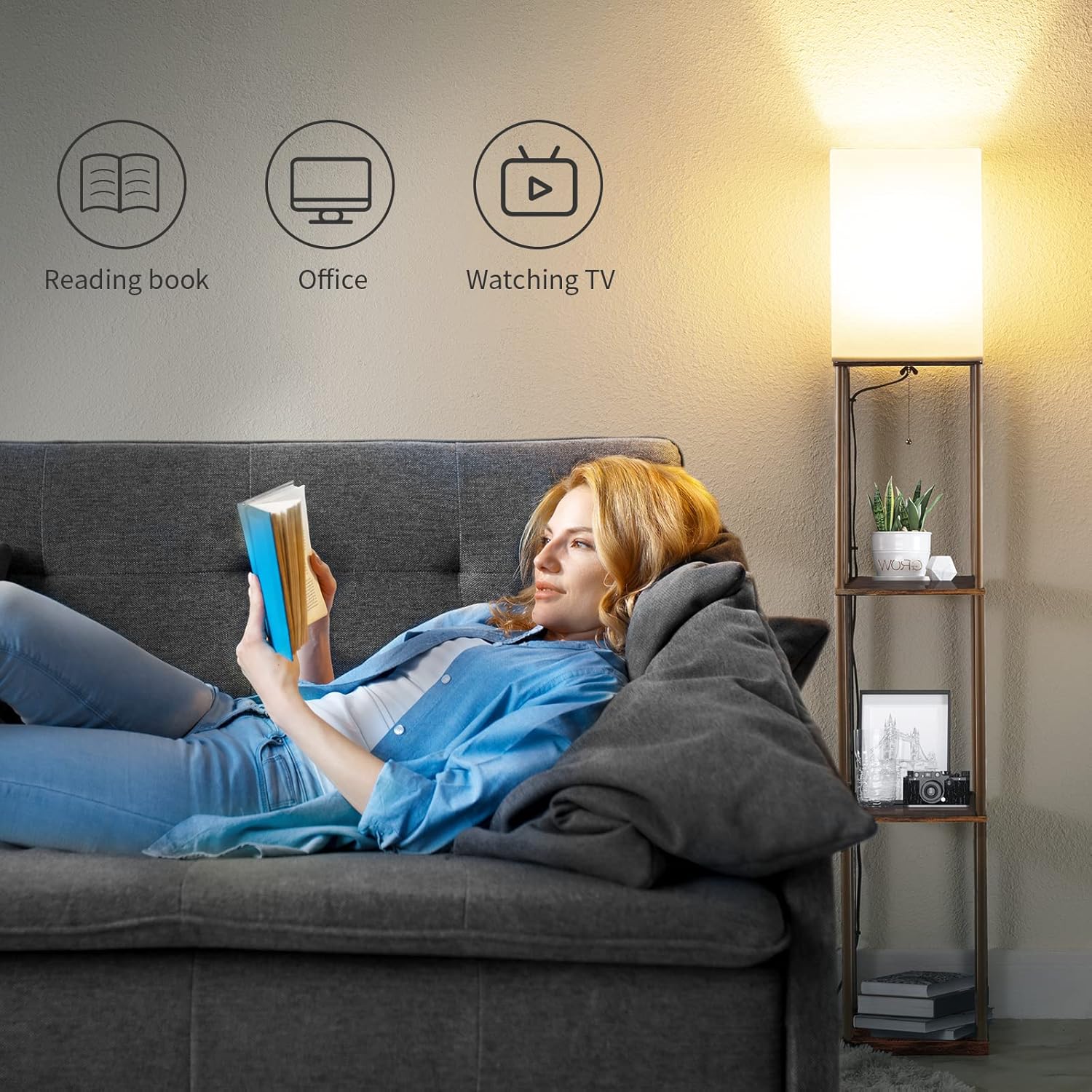 - Non-glaring Cloth Lampshade: This shelf floor lamp is equipped with a high-quality off-white cloth lampshade and opens upwards. With the built-in three-color temperature bulb, it can be used for both functional lighting and ambient lighting.