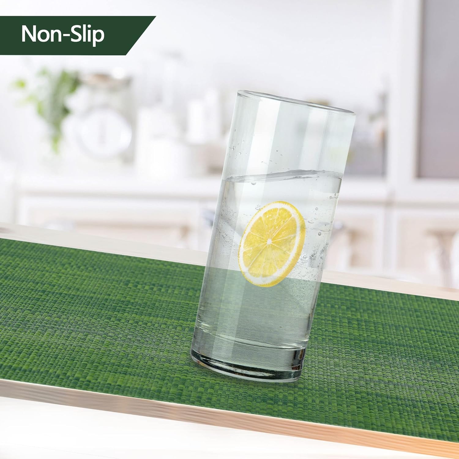 Green Placemats Set of 8 - Wipe Clean Vinyl Placemats - Washable Heat Resistant PVC Placemats for Dining Table - 17x12 Inch (Green, 8)