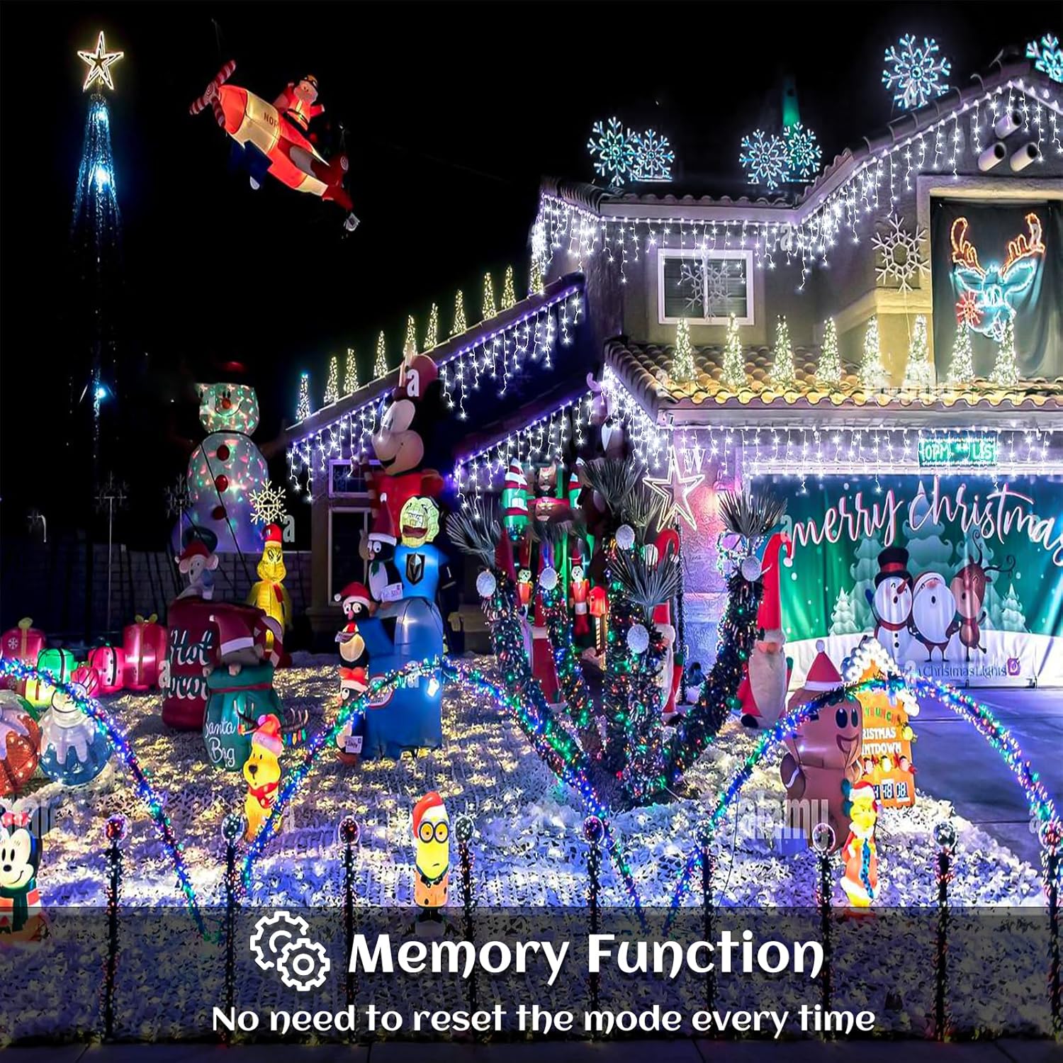 - ăConnectable & Waterproofă Each icicle Christmas lights comes with end-to-end connector, maximum of 3 strings can be connected.This icicle lights outdoor is waterproof for outdoor use, so don't worry about it getting wet in rain or snow.Just protect the plug from the water.This icicle fairy lights is your best choice for Outdoor Indoor Christmas decorations.