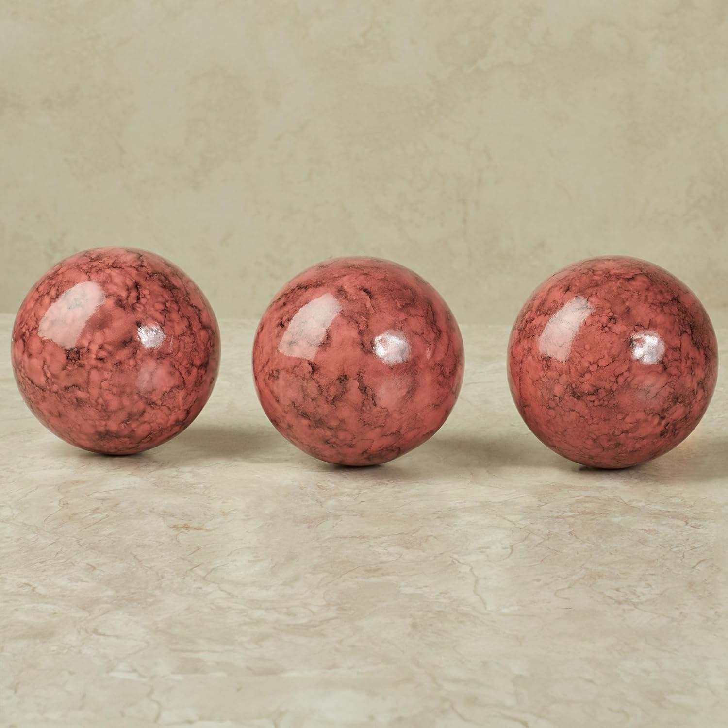 Cambria Cinnabar Marbled Orbs Sphere Balls 4 inches Diameter for Centerpiece Bowl and Tray Displays Set of Three Orbs Only