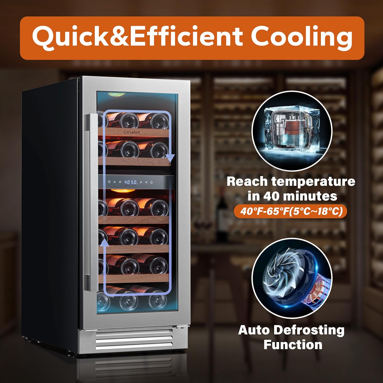 Ca'Lefort 15 Inch Wine Fridge, 28 Bottle Wine Cooler Refrigerator, 40-65°F Wine Refrigerator Glass Door, 3 LED Dual Zone Wine Fridge, Built-in or Freestanding Fridge for Home/Bar/Kitchen (3.0 cu.ft)